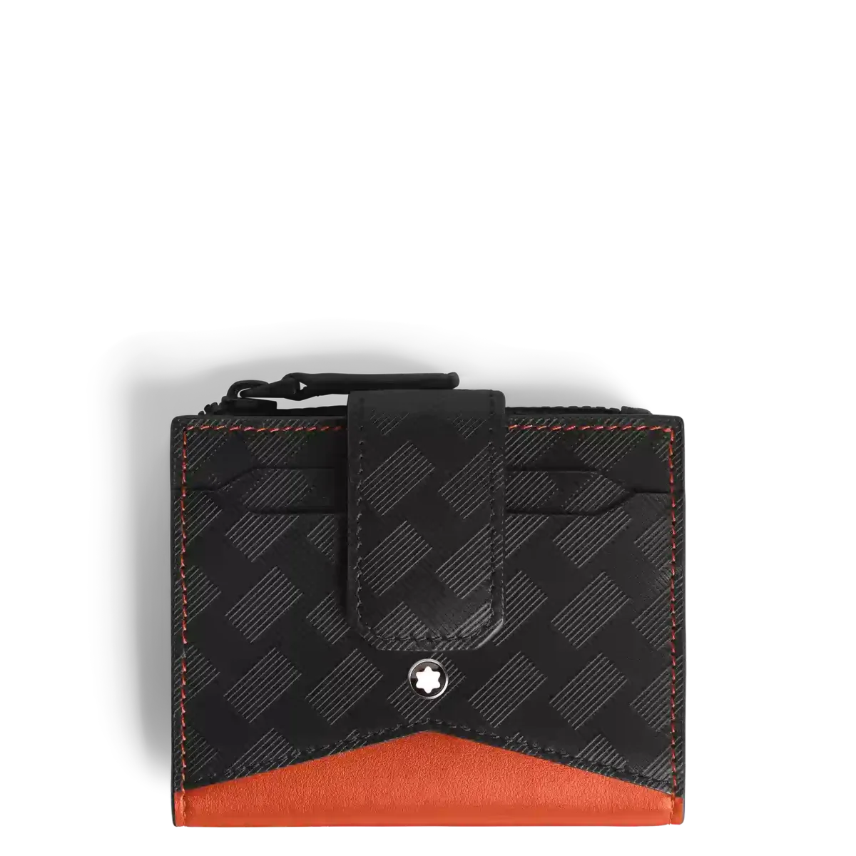 Cartera Extreme 3.0 mini: una potente y compacta cartera. Confeccionada en elegante piel negra con el motivo Extreme 3.0 grabado, esta cartera vertical incluye un monedero, seis ranuras para tarjetas de crédito, un compartimento para billetes, un bolsillo con cremallera para guardar objetos de forma segura y dos bolsillos adicionales. Con un atrevido toque de detalles en piel color cayena, es la combinación perfecta de funcionalidad y diseño elegante para los minimalistas con gusto por el lujo.