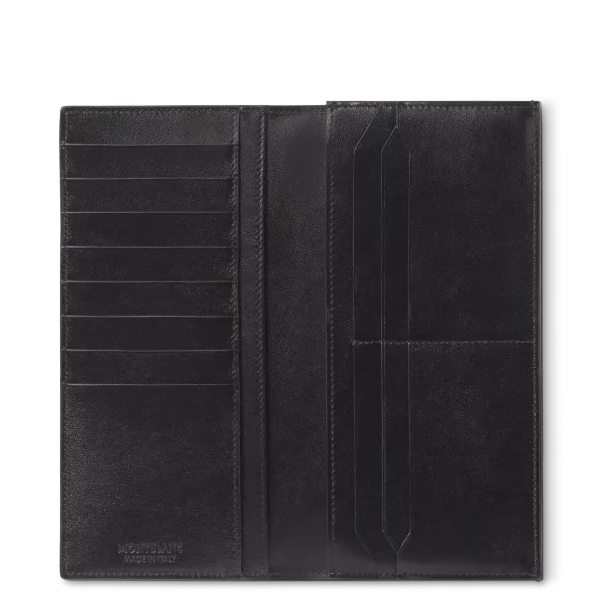 La cartera Meisterstück 14cc, un elegante diseño pensado para ser funcional, cuenta con un gran bolsillo con cremallera para guardar de forma segura monedas u objetos esenciales, y tiene capacidad para 14 tarjetas de crédito en ranuras específicas. Esta sofisticada cartera también cuenta con dos compartimentos para billetes y dos bolsillos adicionales para recibos. Fabricada en piel lisa, está forrada con tejido negro y rematada con el emblema de Montblanc.
