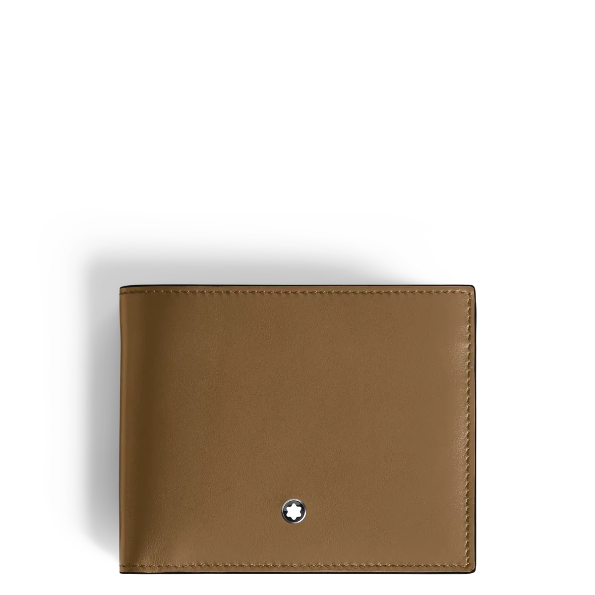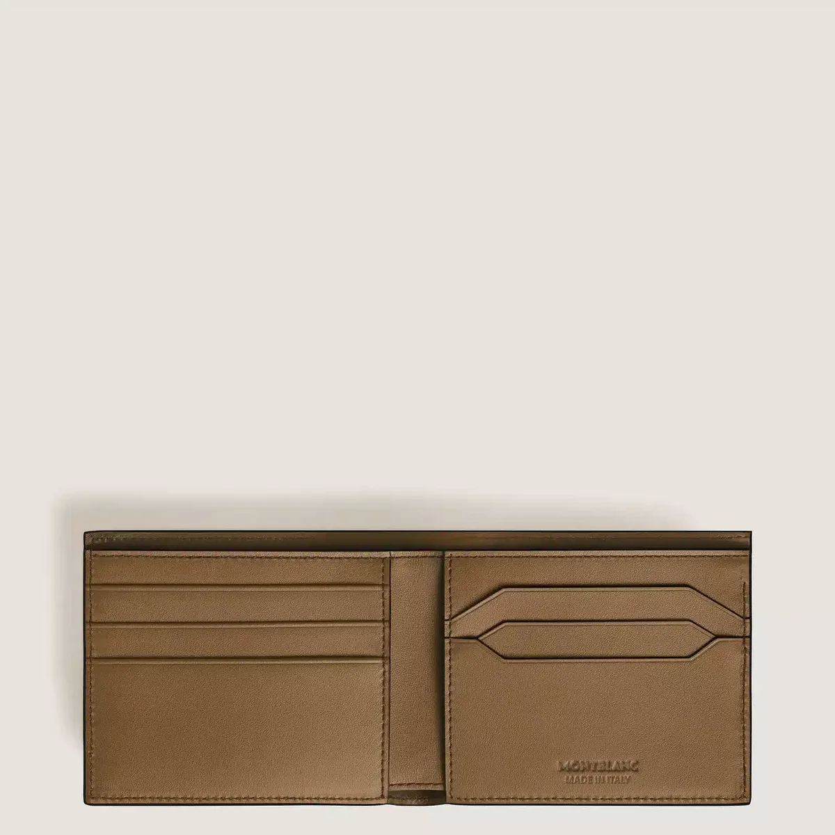 Delgada y elegante, esta clásica cartera plegable es una compañera elegante para el día a día. Diseñada para guardar todos tus objetos esenciales, la cartera cuenta con seis ranuras para tarjetas de crédito, dos compartimentos para billetes y dos bolsillos adicionales para recibos. Fabricada en lujosa piel Meisterstück de color arena, está rematada con el sutil emblema de Montblanc en la parte delantera.