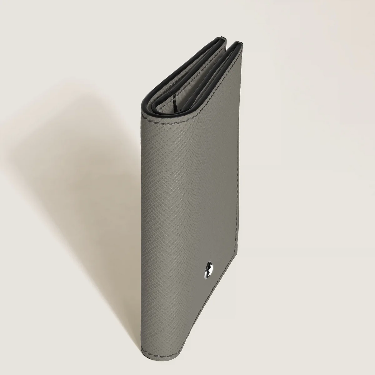 Pequeña y elegante, esta mini cartera confeccionada en piel Saffiano gris medio te permite viajar ligero sin dejar atrás ninguno de tus documentos importantes. Su silueta compacta se abre para revelar tres ranuras para tarjetas de crédito y un compartimento para billetes, además de dos bolsillos adicionales.