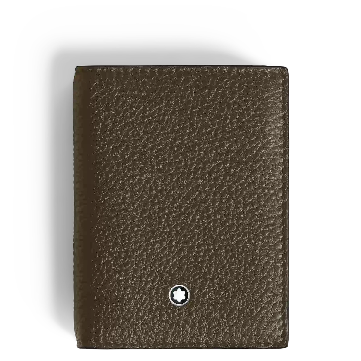 Fabricado en lujosa piel caqui de grano suave, este tarjetero de bolsillo es elegante y práctico. Tiene capacidad para varias tarjetas de visita y cuatro tarjetas de crédito, y luce el elegante emblema de Montblanc en la parte delantera.