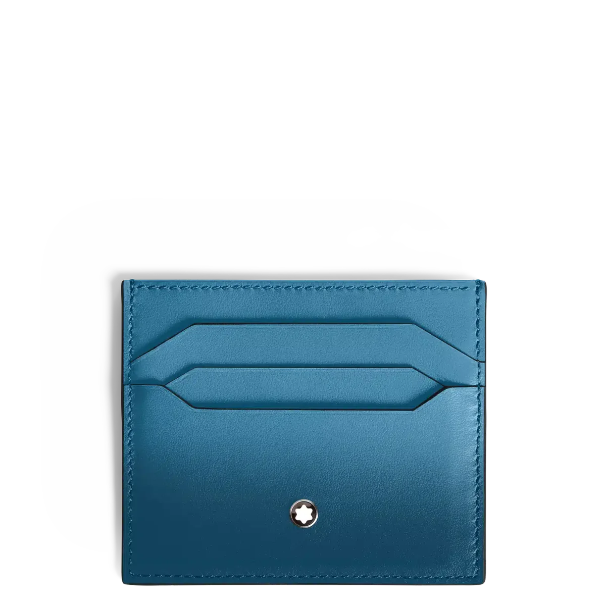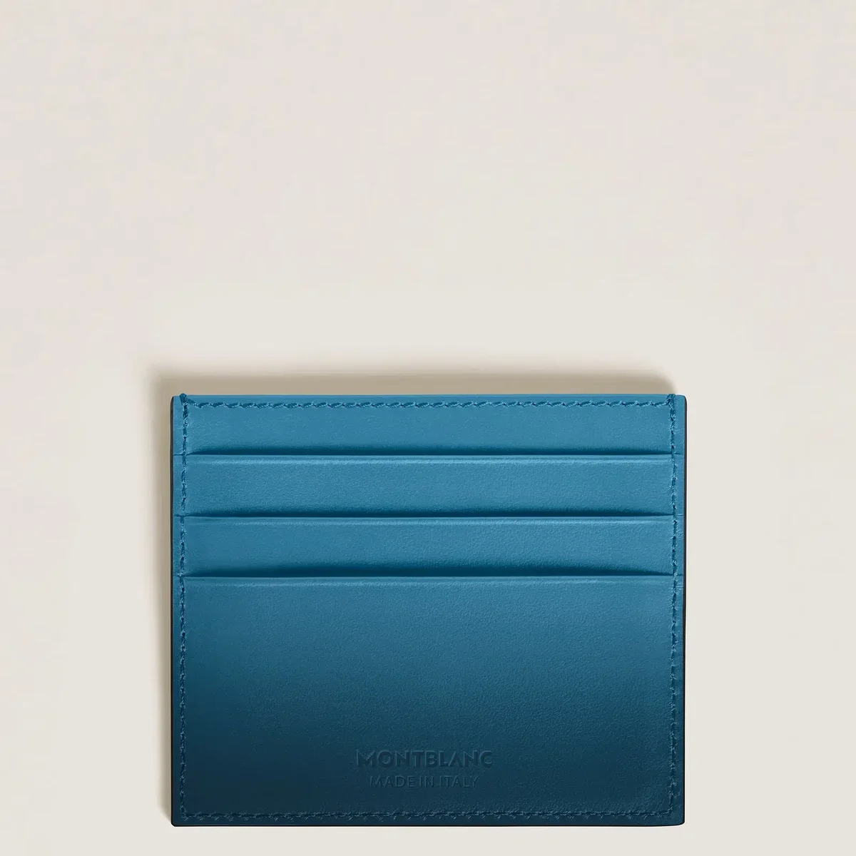 Este tarjetero Meisterstück, ideal para el día a día, tiene una silueta compacta que cabe perfectamente en la mayoría de los bolsillos. Fabricado en piel azul ahumada con un efecto sfumato aplicado manualmente para darle un aspecto elegante, tiene espacio para hasta seis tarjetas de crédito y cuenta con un bolsillo adicional para objetos pequeños.