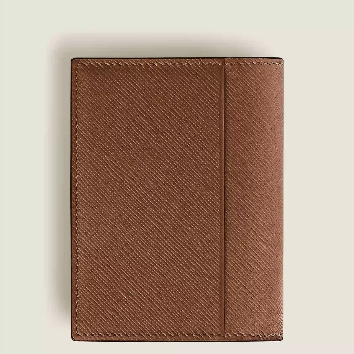 Compacto pero versátil, este tarjetero está fabricado en piel repujada de color fauve. Diseñado con detalles funcionales por dentro y por fuera, cuenta con tres ranuras para tarjetas de crédito, un compartimento para tarjetas de visita y un bolsillo adicional en el interior, mientras que el exterior incluye una ranura extra para una cuarta tarjeta de crédito.