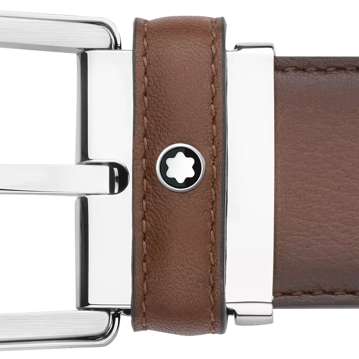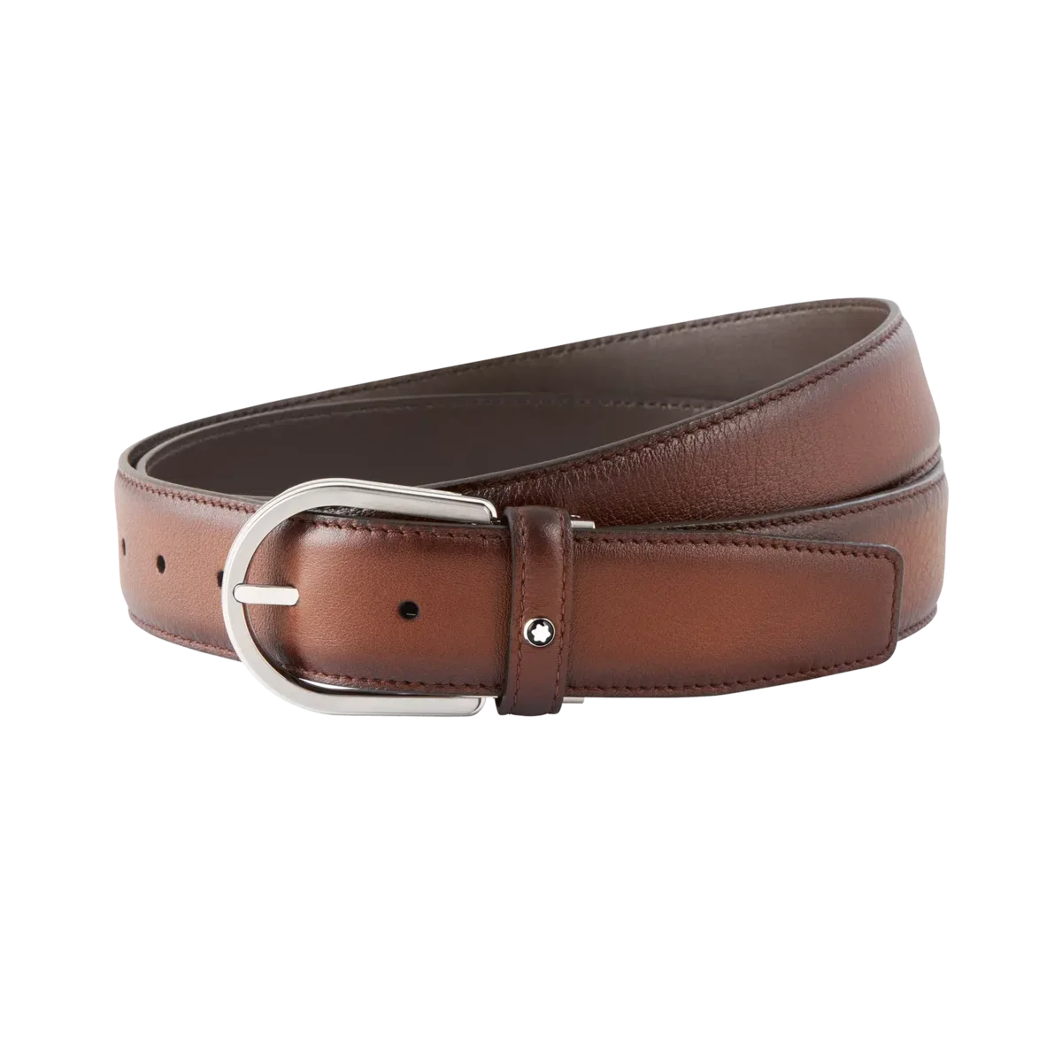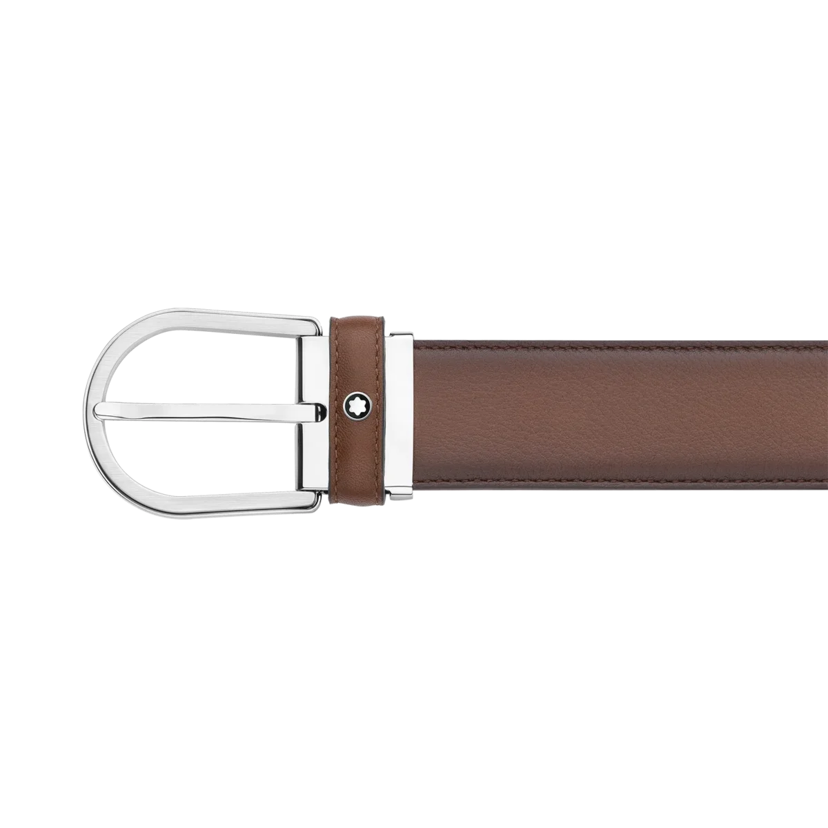 Descubra todos los detalles del cinturón de cuero marrón con hebilla Horseshoe de 35 mm. Compre online en la tienda oficial de Montblanc.
