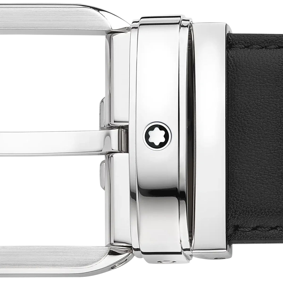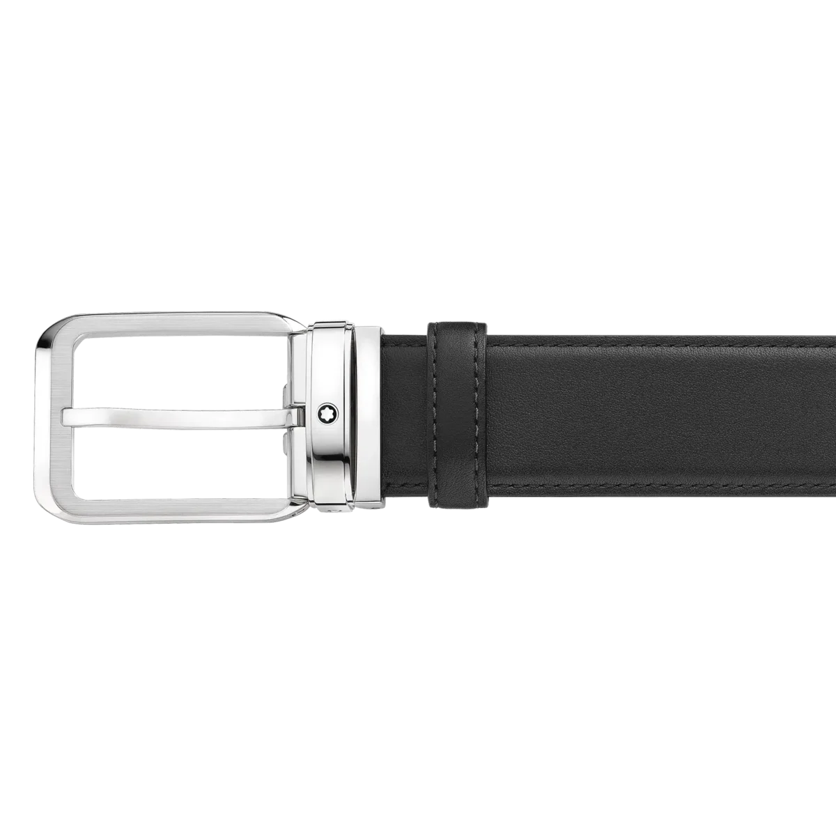 Hebilla rectangular de acero inoxidable. Autoajustable, 3,5 cm x 120 cm, correa de cuero liso negro. Este cinturón combina tanto con trajes de negocios como con looks modernos.