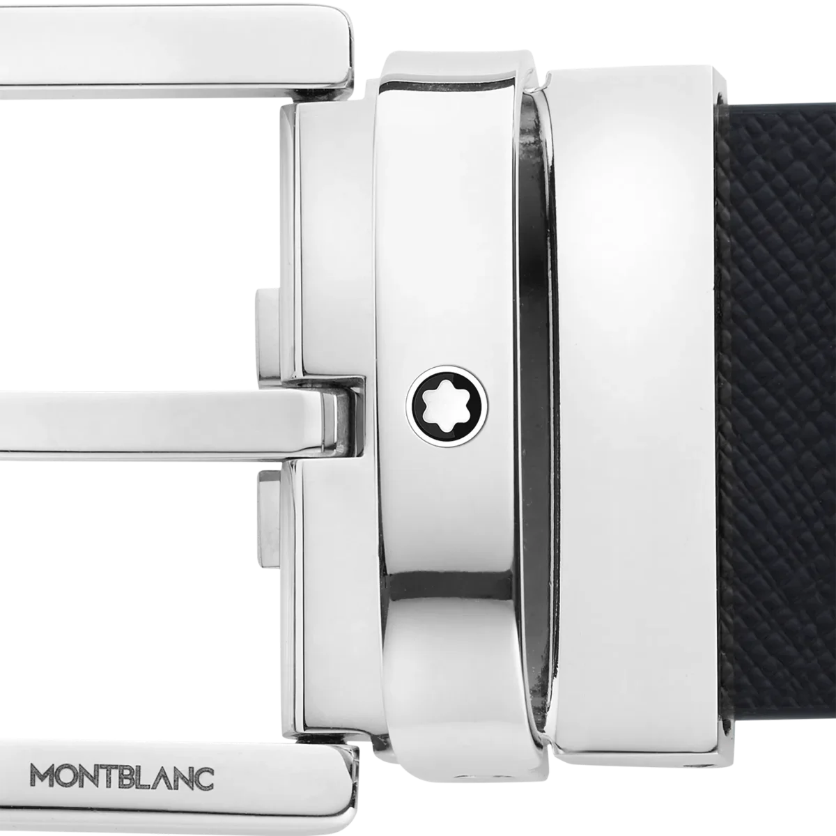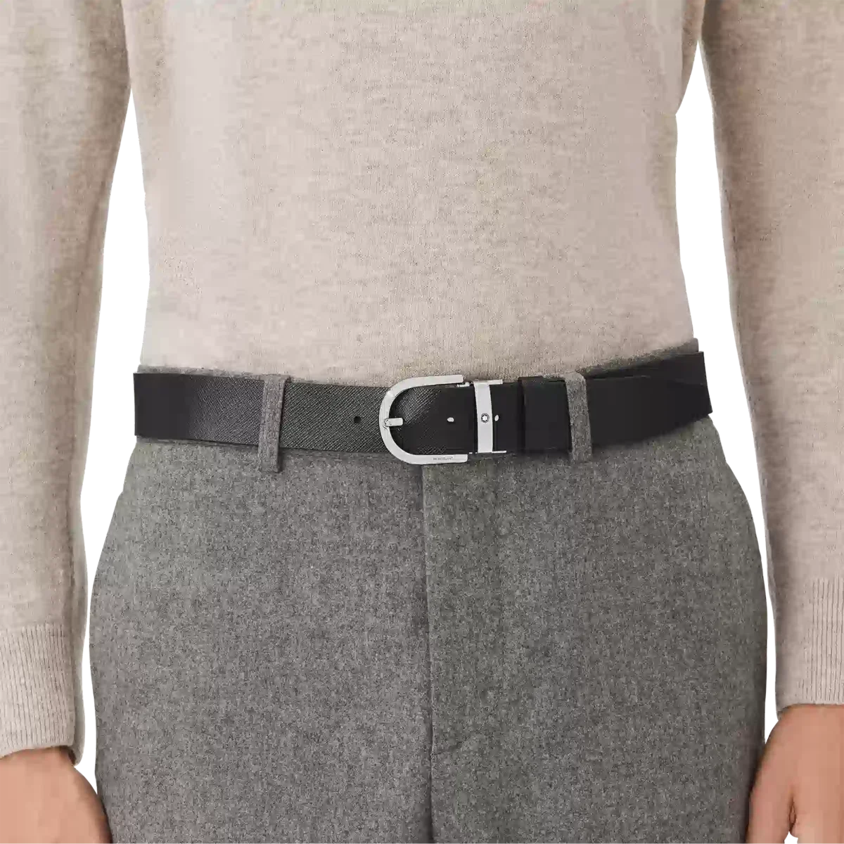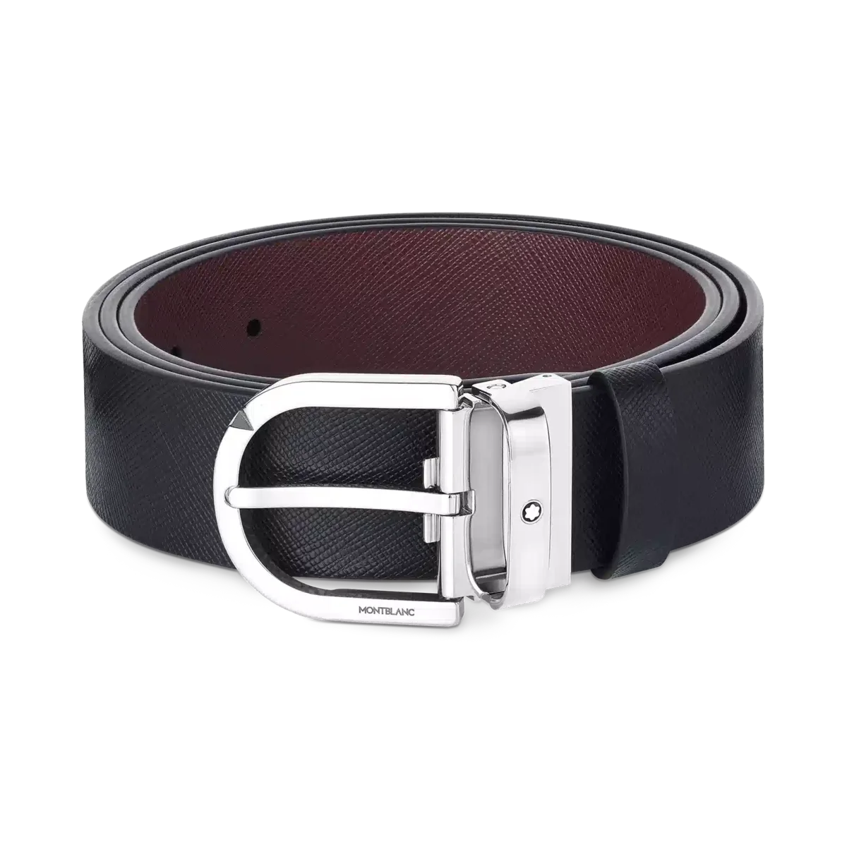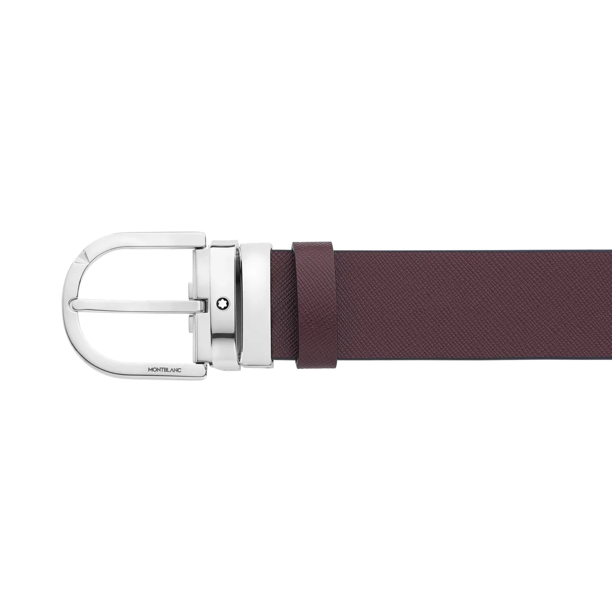 Versátil y atrevido, este cinturón reversible de piel con estampado Saffiano de 35 mm es la elección perfecta para aquellos que no temen dejar huella. Su hebilla con forma de herradura cuenta con un mecanismo fácil de abrir y se adapta perfectamente tanto al lado negro como al burdeos del cinturón.
