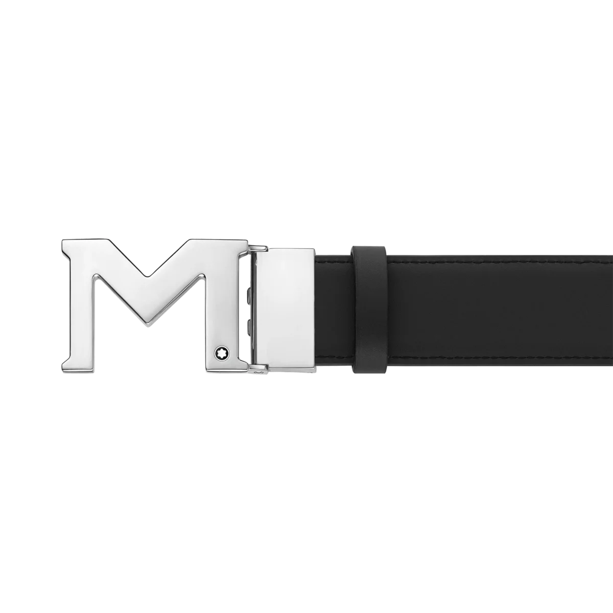 Hebilla M recubierta de paladio. Correa autoajustable, 3,5 cm x 120 cm, reversible, de piel granulada negra y lisa negra, para un look deportivo.span>