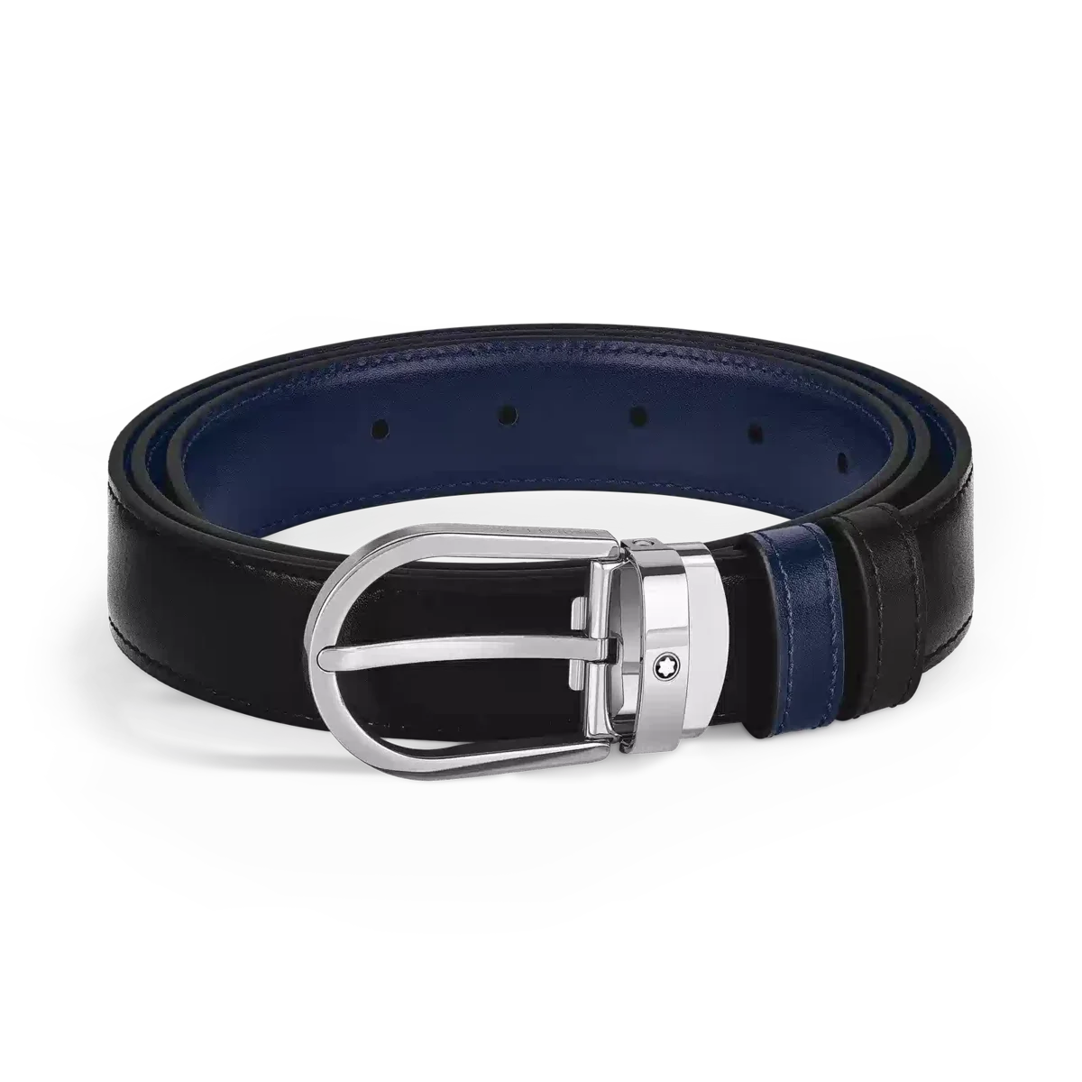 Este cinturón reversible combina elegancia discreta y practicidad, ofreciendo dos estilos distintivos en un solo accesorio. Con nuestra distintiva hebilla Montblanc en forma de herradura con acabado en paladio, un lado de la correa de 35 mm es de cuero negro con estampado saffiano, mientras que el reverso es de cuero Meisterstück azul tinta para una sofisticación clásica.