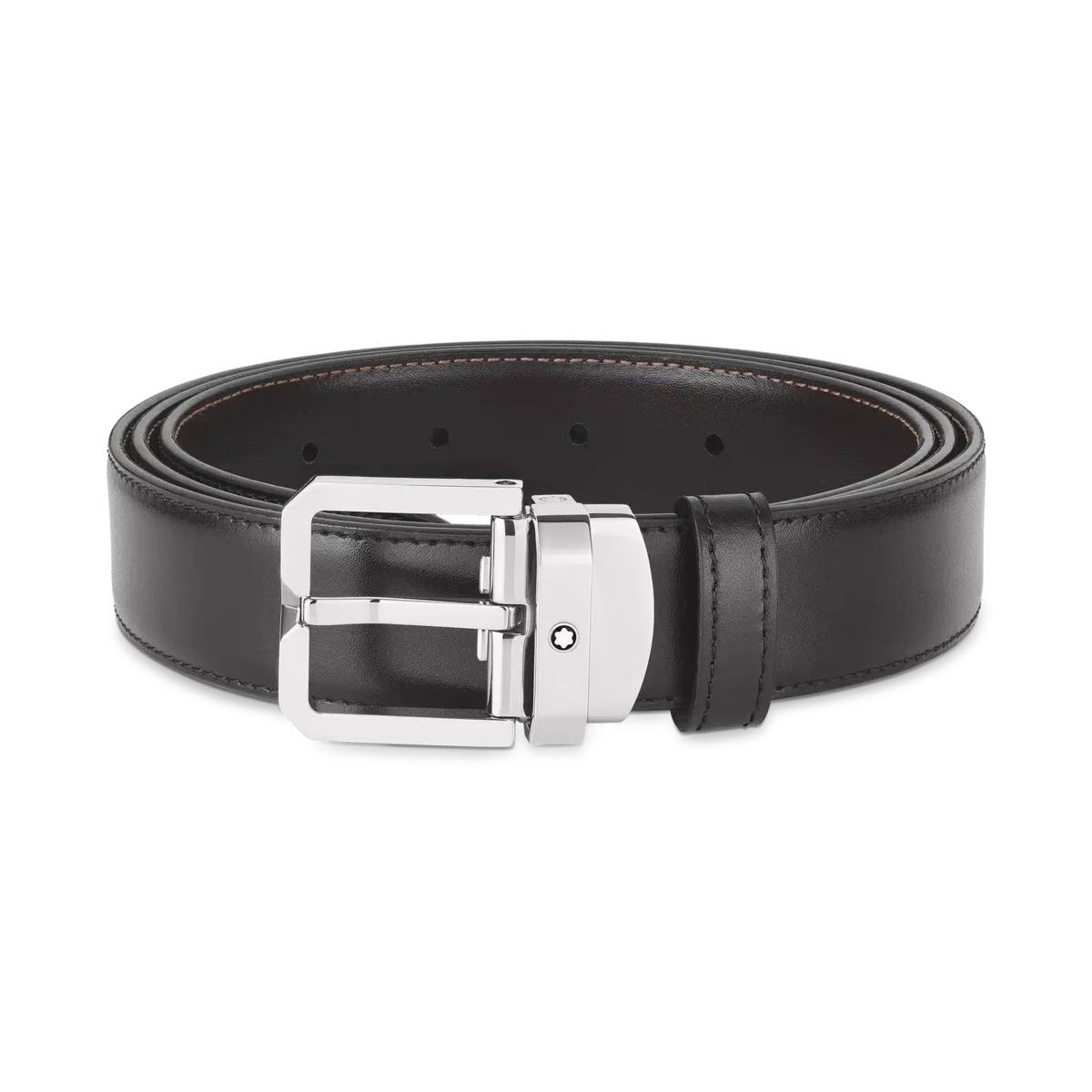 Descubra todos los detalles del cinturón reversible de piel negro/marrón de 30 mm. Compre online en la tienda oficial de Montblanc.