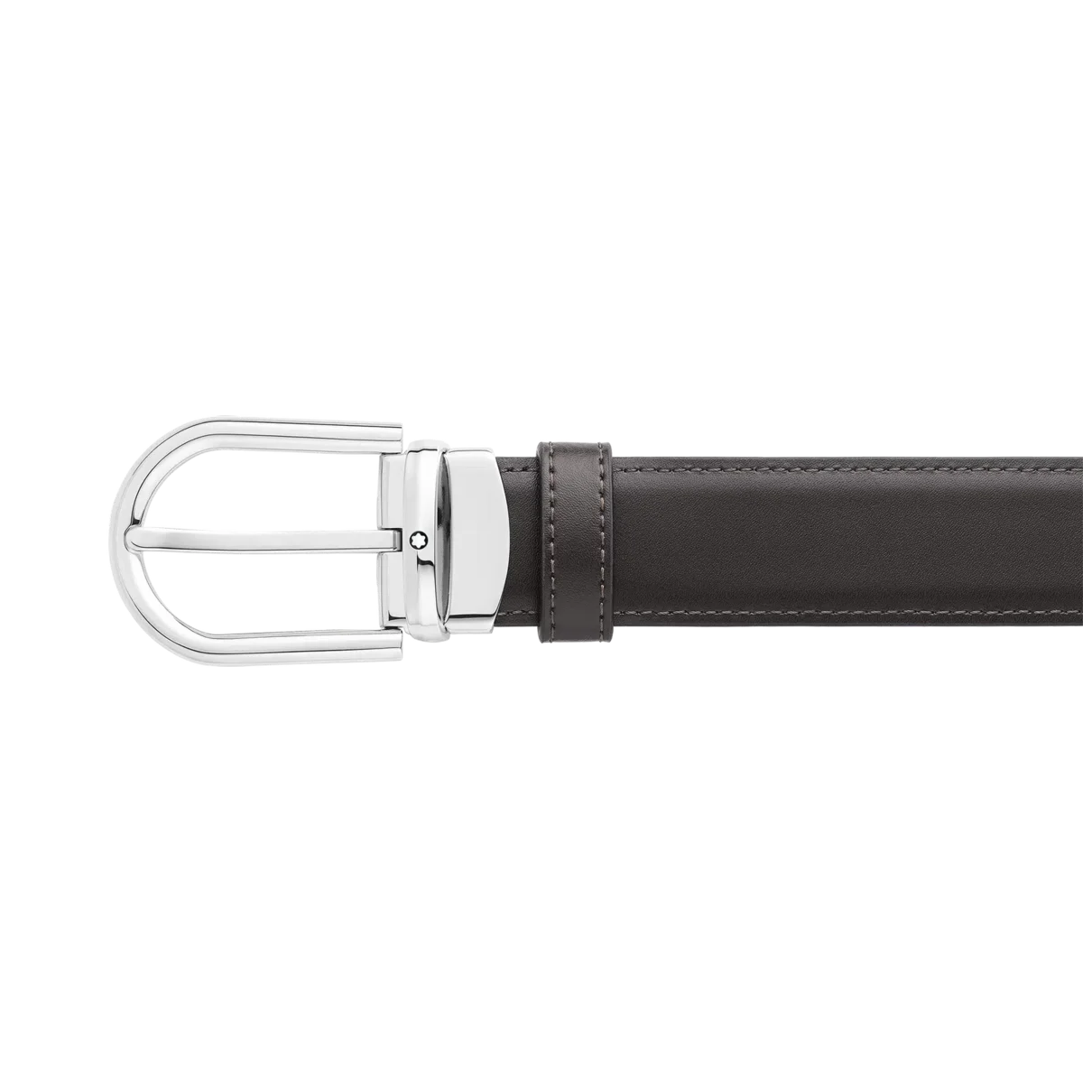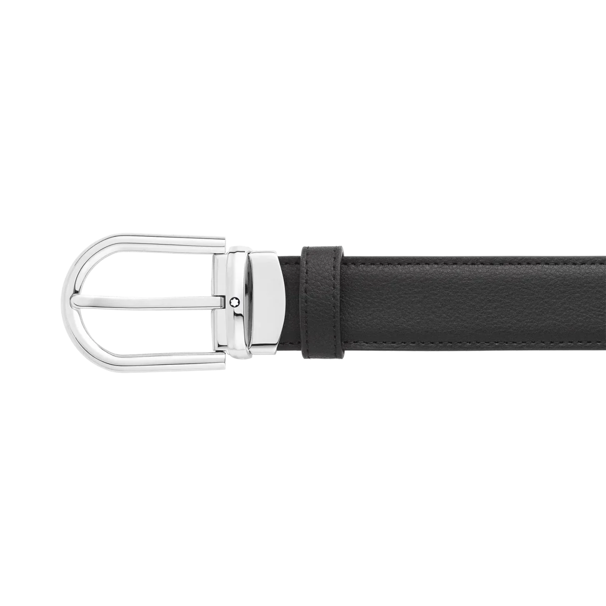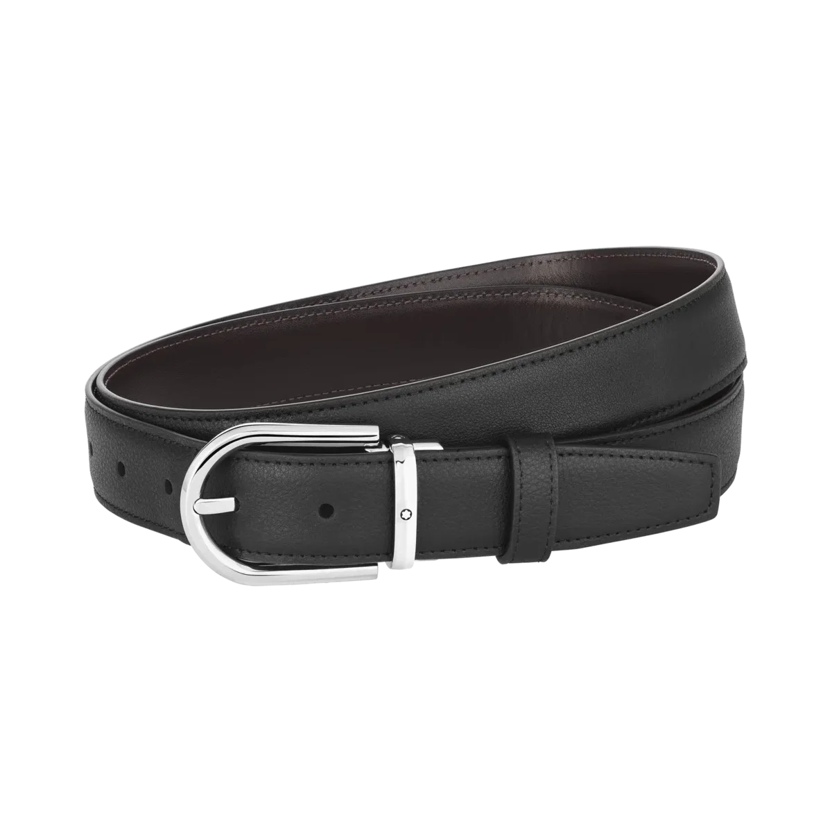 Descubra todos los detalles del cinturón de cuero reversible negro/marrón con hebilla en forma de herradura de 30 mm. Compre online en la tienda oficial de Montblanc.