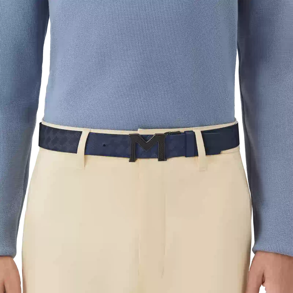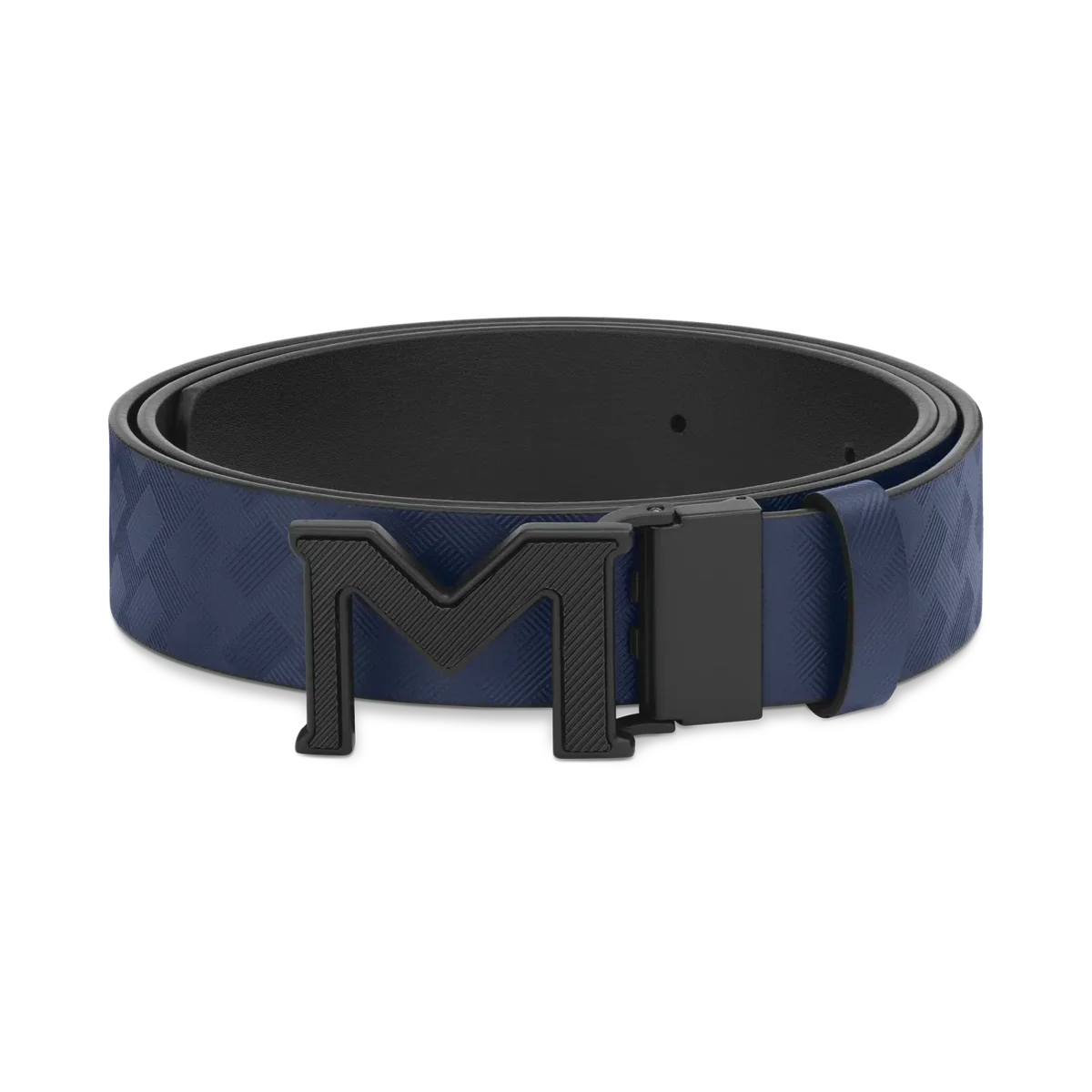 Con piel azul texturizada Extreme 3.0 por un lado y piel negra lisa por el otro, este cinturón reversible es deportivo y elegante a la vez. La llamativa hebilla M rinde homenaje al diseño atemporal de Montblanc.