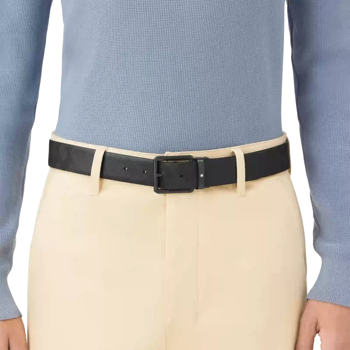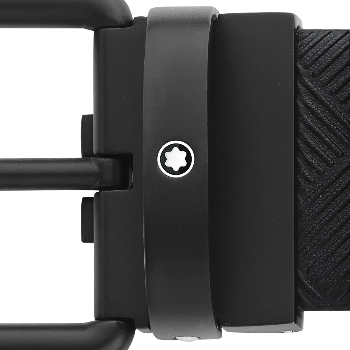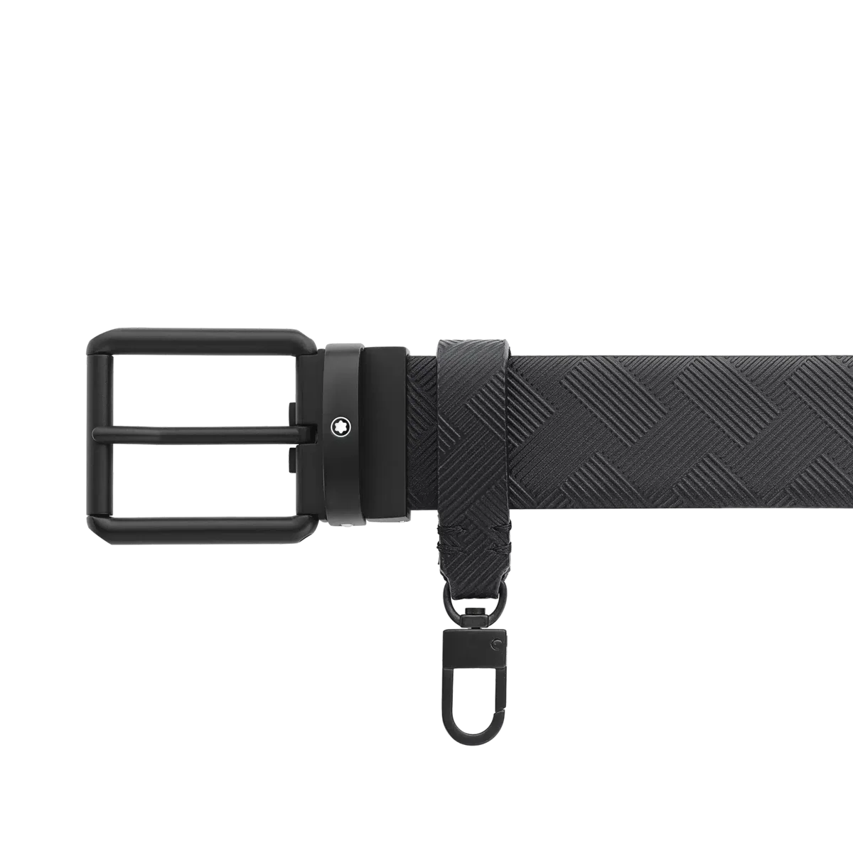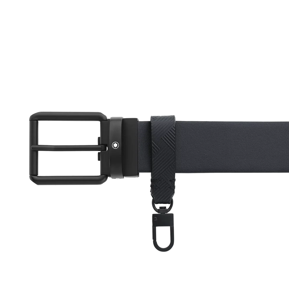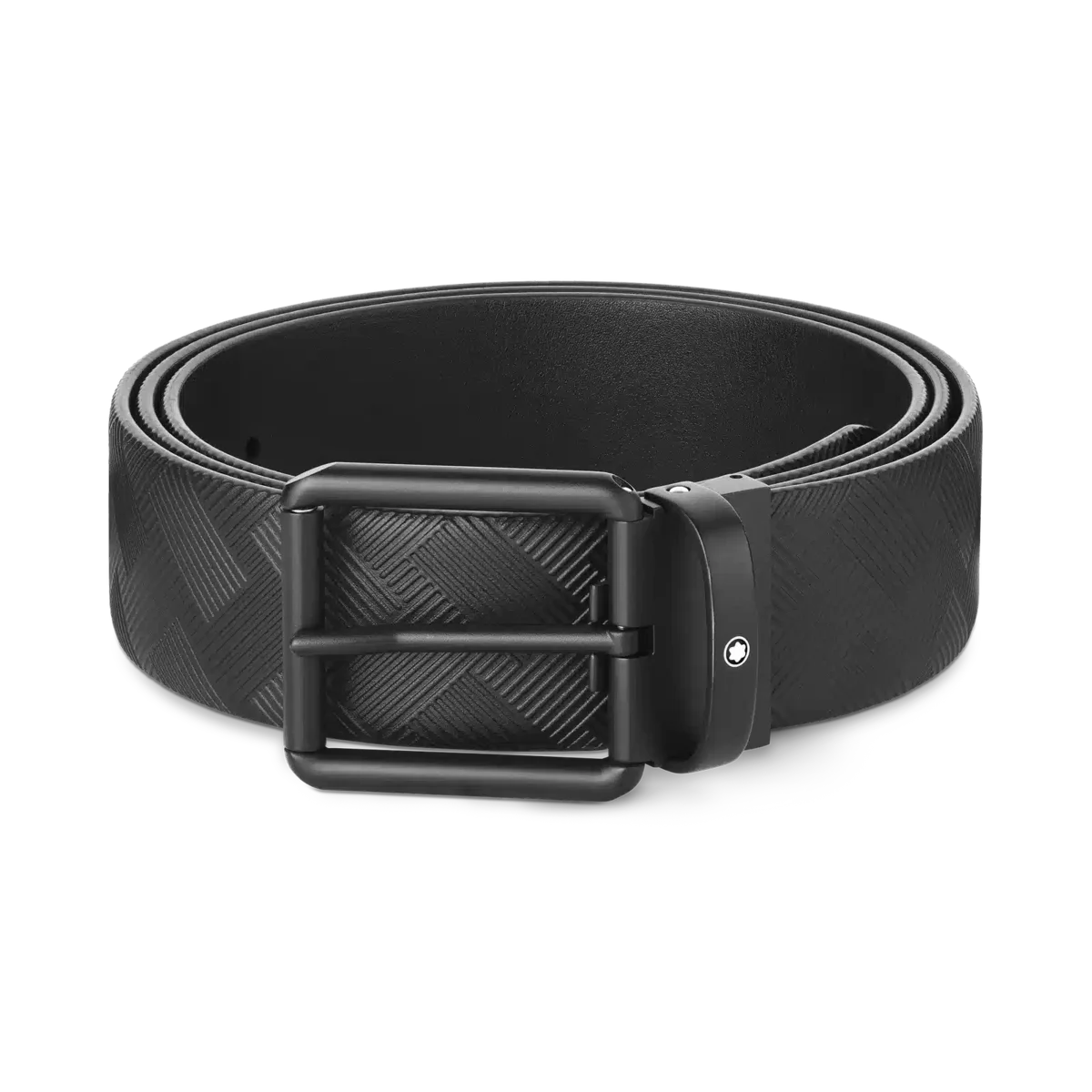 Este cinturón reversible de piel negra, ideal para cualquier ocasión, destaca por su presilla adicional, una característica que permite enganchar pequeños accesorios y simplifica la vida cuando se está en movimiento. Con un lado confeccionado en nuestro característico cuero estampado Montblanc Extreme 3.0 y otro en cuero liso, el cinturón de 35 mm se ata con una hebilla de pasador enrollado con el logotipo de Montblanc.
