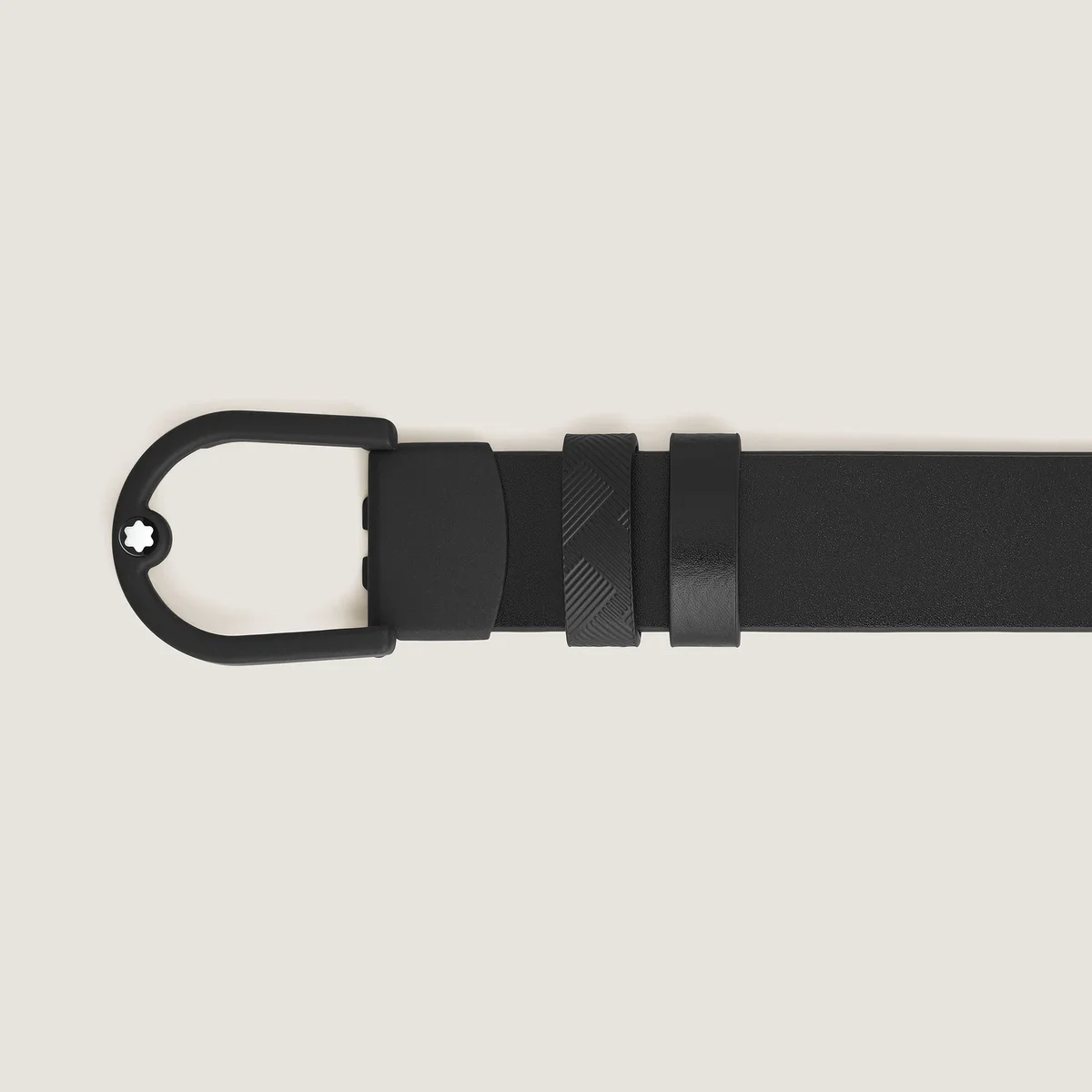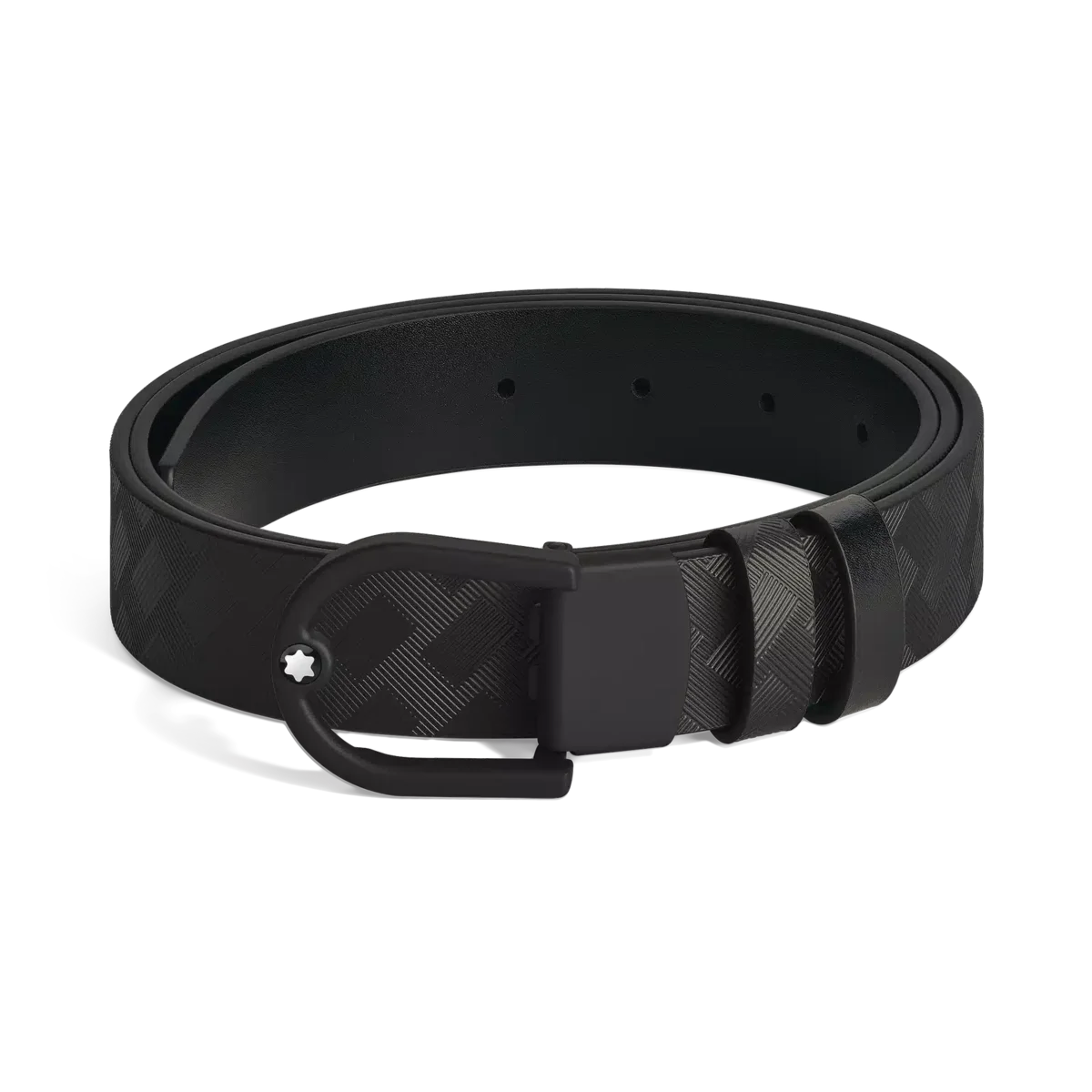 Este cinturón reversible de 30 mm combina la elegante silueta de una hebilla con acabado PVD engomado con la versatilidad de dos correas de cuero distintas. Con líneas limpias y curvas, la hebilla en forma de herradura añade un toque de sofisticación moderna a tu estilo. La correa del cinturón ofrece versatilidad y un estilo refinado, con dos looks distintos en un solo accesorio: mientras que un lado presenta cuero Extreme 3.0 estampado en negro con un diseño atrevido y texturizado, el reverso presenta cuero Meisterstück negro elegante para un acabado atemporal y pulido.