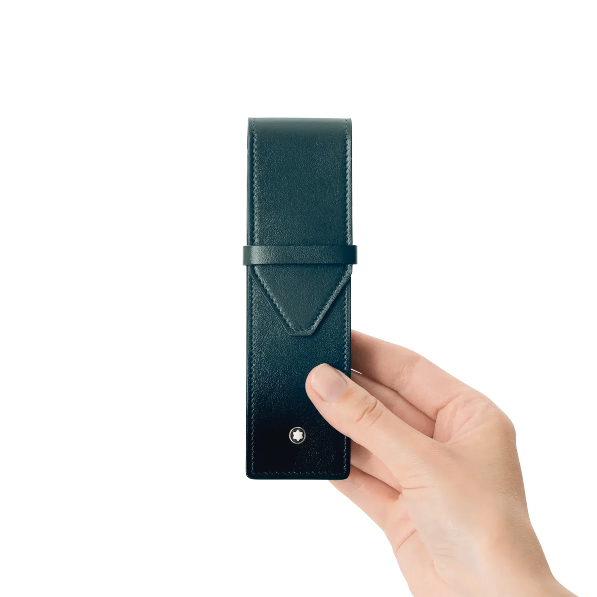 Lleve sus instrumentos de escritura con estilo con este versátil estuche para bolígrafos Meisterstück. Diseñado para ser su elegante compañero en la oficina y fuera de ella, ofrece un lugar seguro para dos instrumentos de escritura. Meticulosamente elaborado con refinada piel británica verde de profundo brillo y un efecto sfumato aplicado manualmente, su diseño en forma de sobre se abre para revelar un compartimento específico. Tiene capacidad para dos instrumentos de escritura del tamaño Meisterstück LeGrand o Classique. Busca el emblema de Montblanc que adorna la solapa delantera. Mantén tus bolígrafos a salvo y marca la diferencia con este accesorio imprescindible.