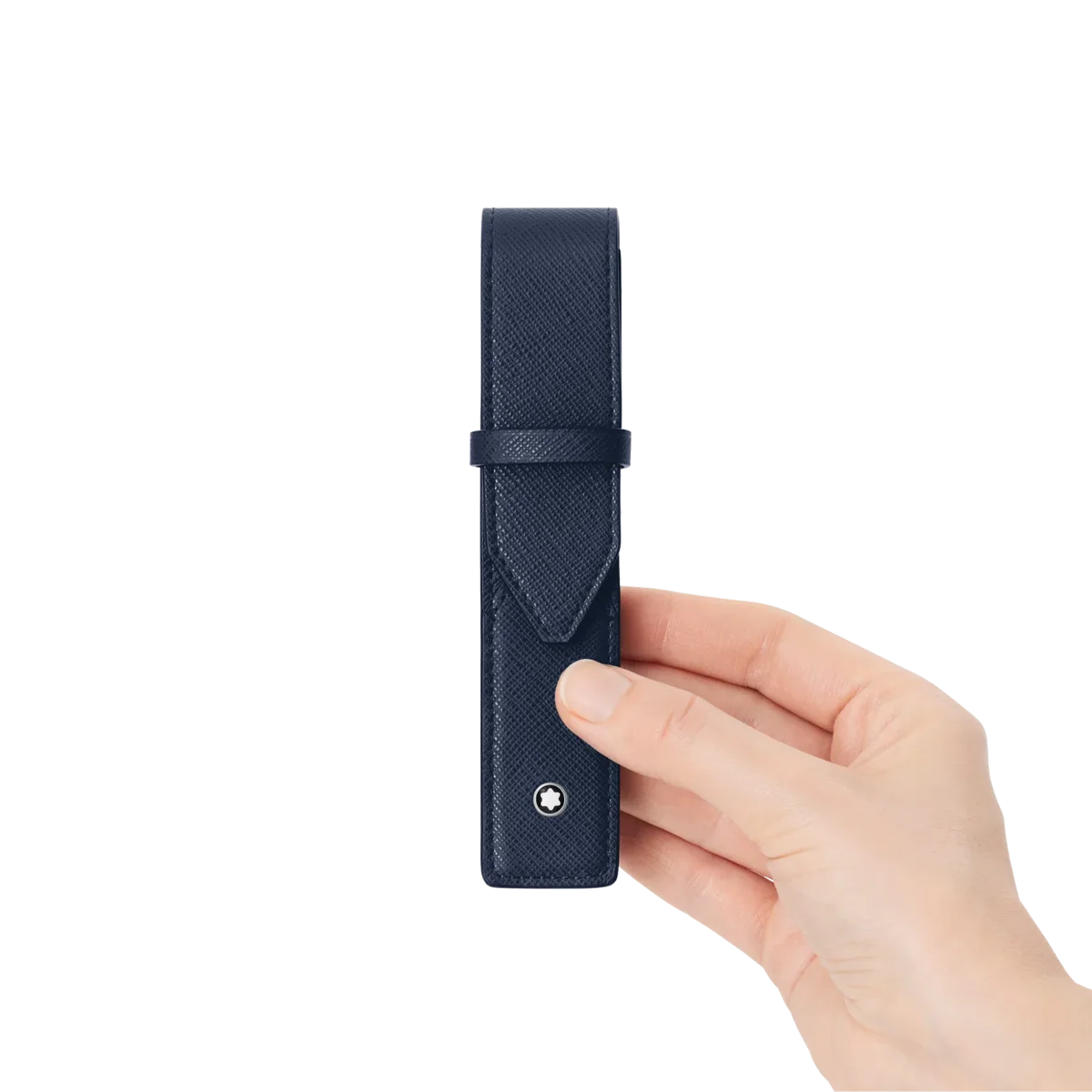 Mantenga su instrumento de escritura seguro y elegante en esta funda para bolígrafos específica. El cuero azul tinta de grano completo añade un atractivo táctil, mientras que la silueta superpuesta recuerda la forma de un sobre, en un nuevo homenaje a la palabra escrita.