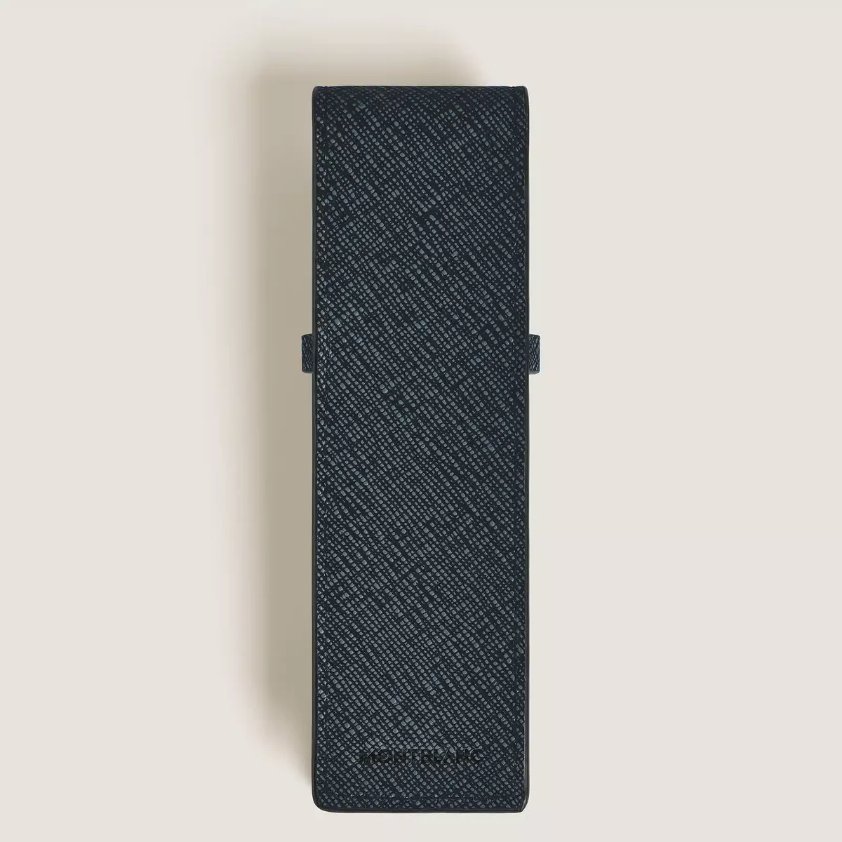 Este estuche para bolígrafos, un accesorio elegante y refinado, está diseñado para guardar hasta dos instrumentos de escritura. Fabricado en piel sartorial repujada en una elegante combinación de dos tonos, azul y negro, su silueta superpuesta se inspira en la forma de un sobre, rindiendo homenaje a la cultura de la escritura.
