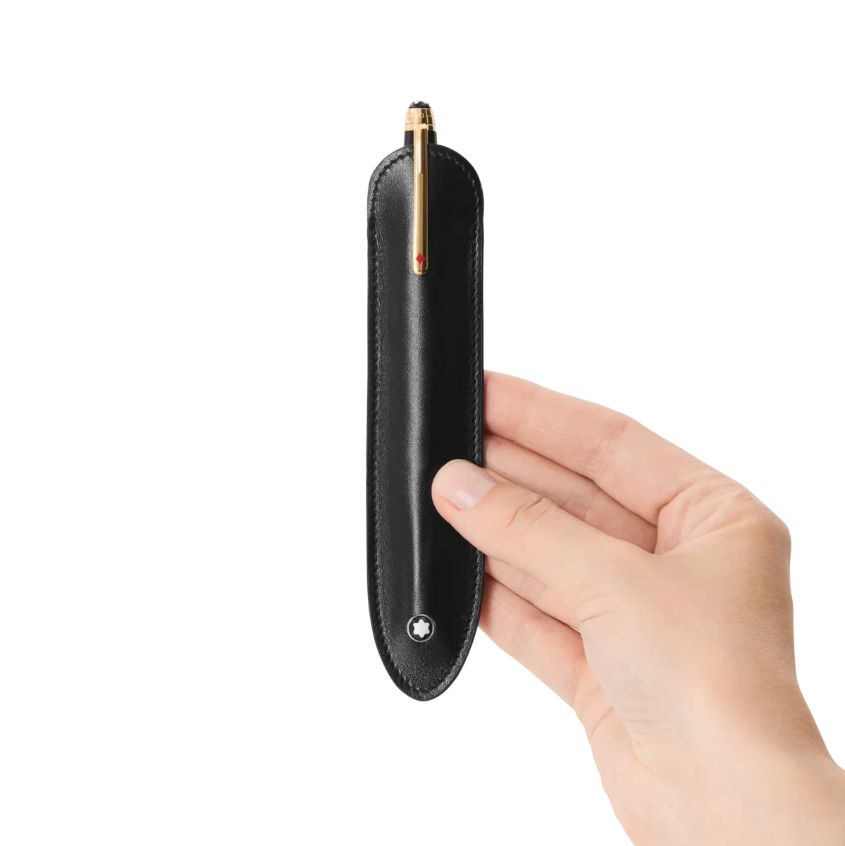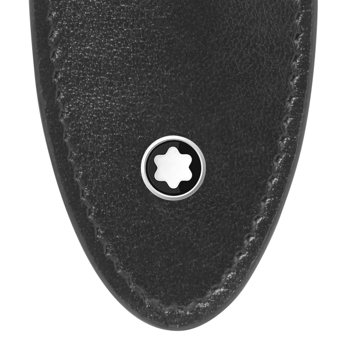 Con su suave piel negra, la funda para bolígrafo Meisterstück es una forma elegante de transportar o guardar de forma segura su instrumento de escritura favorito. La funda delgada está diseñada para guardar un bolígrafo del tamaño del Montblanc Meisterstück Classique o LeGrand, y cabe discretamente en su bolsillo.