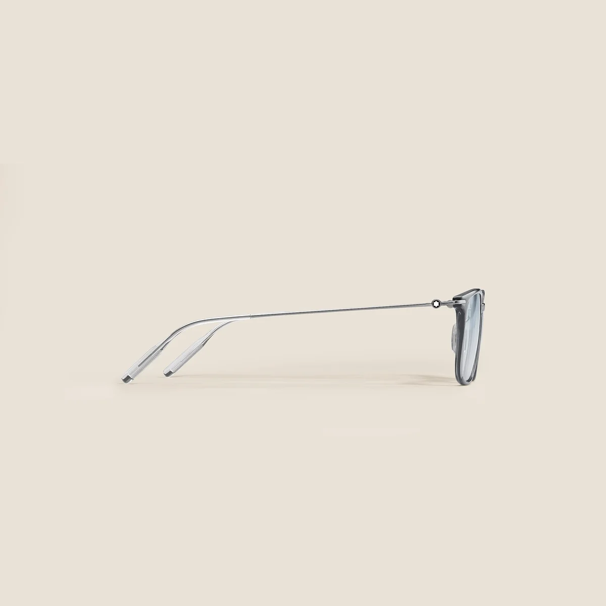 Estas gafas de sol de estilo cuadrado tienen una montura inyectada de color gris y lentes fotocromáticas, que ajustan la oscuridad de las lentes en función de la exposición a la luz solar. El emblema de Montblanc está encapsulado en el diseño de las patillas. El logotipo de Montblanc está grabado con láser en la lente izquierda de las gafas de sol y el patrón antideslizante está grabado con láser en el interior de las puntas de las patillas para aumentar la comodidad.