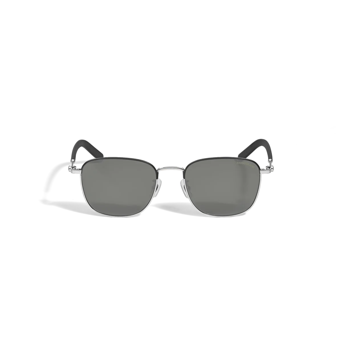 Estas gafas de sol de estilo cuadrado tienen una montura metálica plateada y lentes grises. El emblema de Montblanc está encapsulado en el diseño de la patilla. El logotipo de Montblanc está grabado con láser en la lente izquierda de las gafas de sol y el patrón antideslizante está grabado con láser en el interior de las puntas de las patillas para aumentar la comodidad.