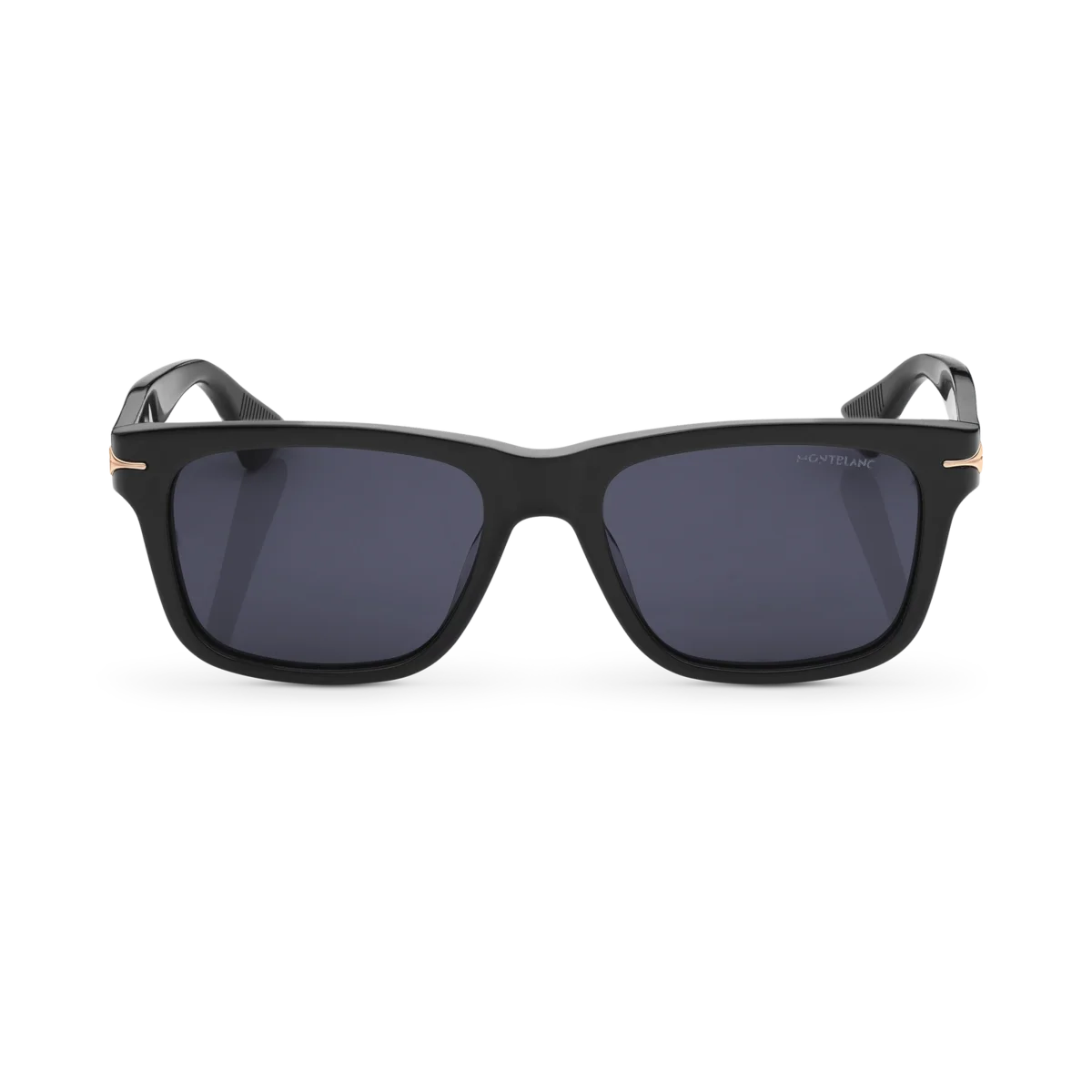 Estas gafas de sol de estilo rectangular tienen una montura de acetato de color negro y lentes negras. Inspiradas en el diseño de la plumilla de los instrumentos de escritura, cuentan con un detalle decorativo en forma de plumilla en el diseño de las patillas. El logotipo de Montblanc de una línea está grabado en el lado derecho de la patilla, además, el logotipo está grabado con láser en la lente izquierda y el patrón antideslizante está grabado con láser en el lado interno de las puntas de las patillas para aumentar la comodidad.