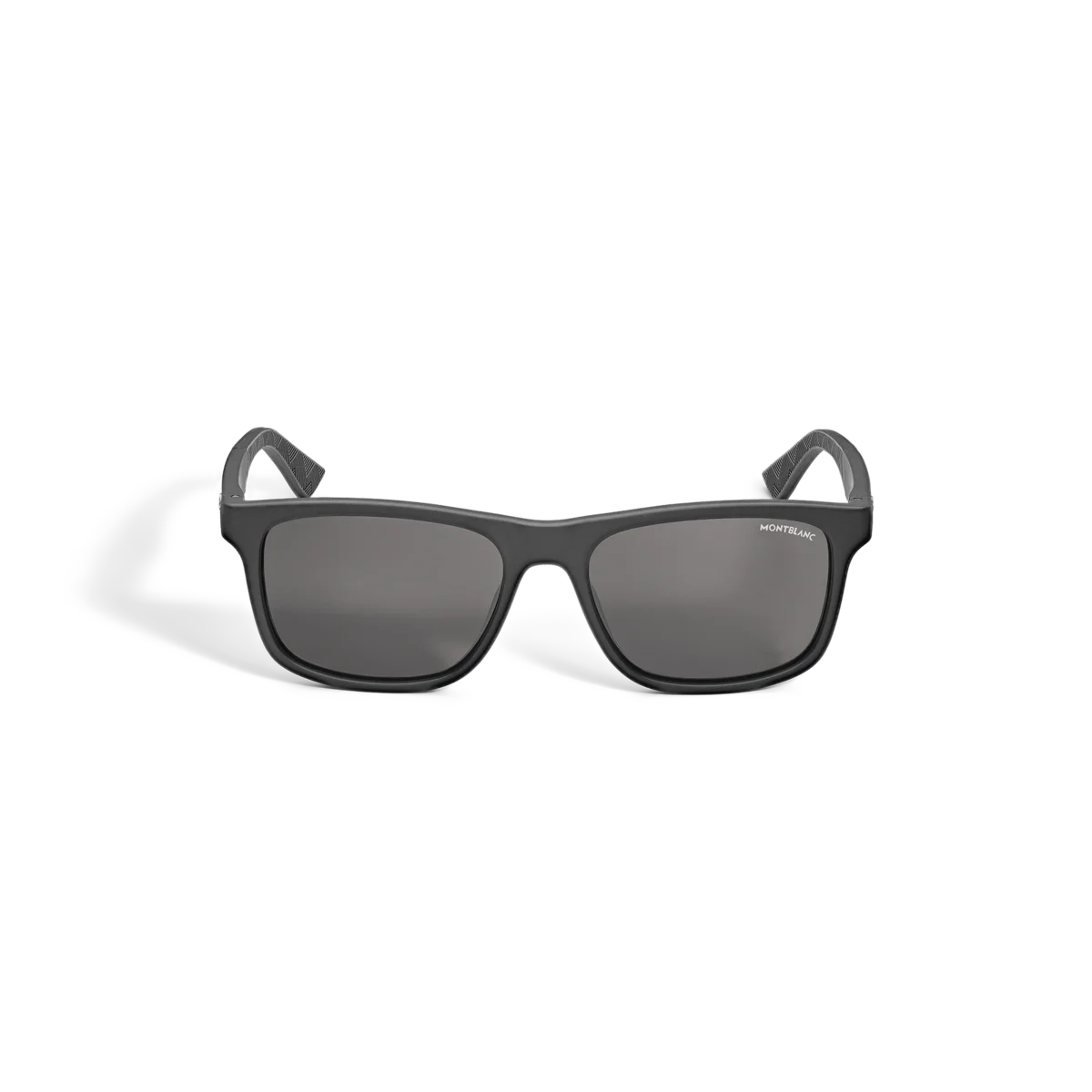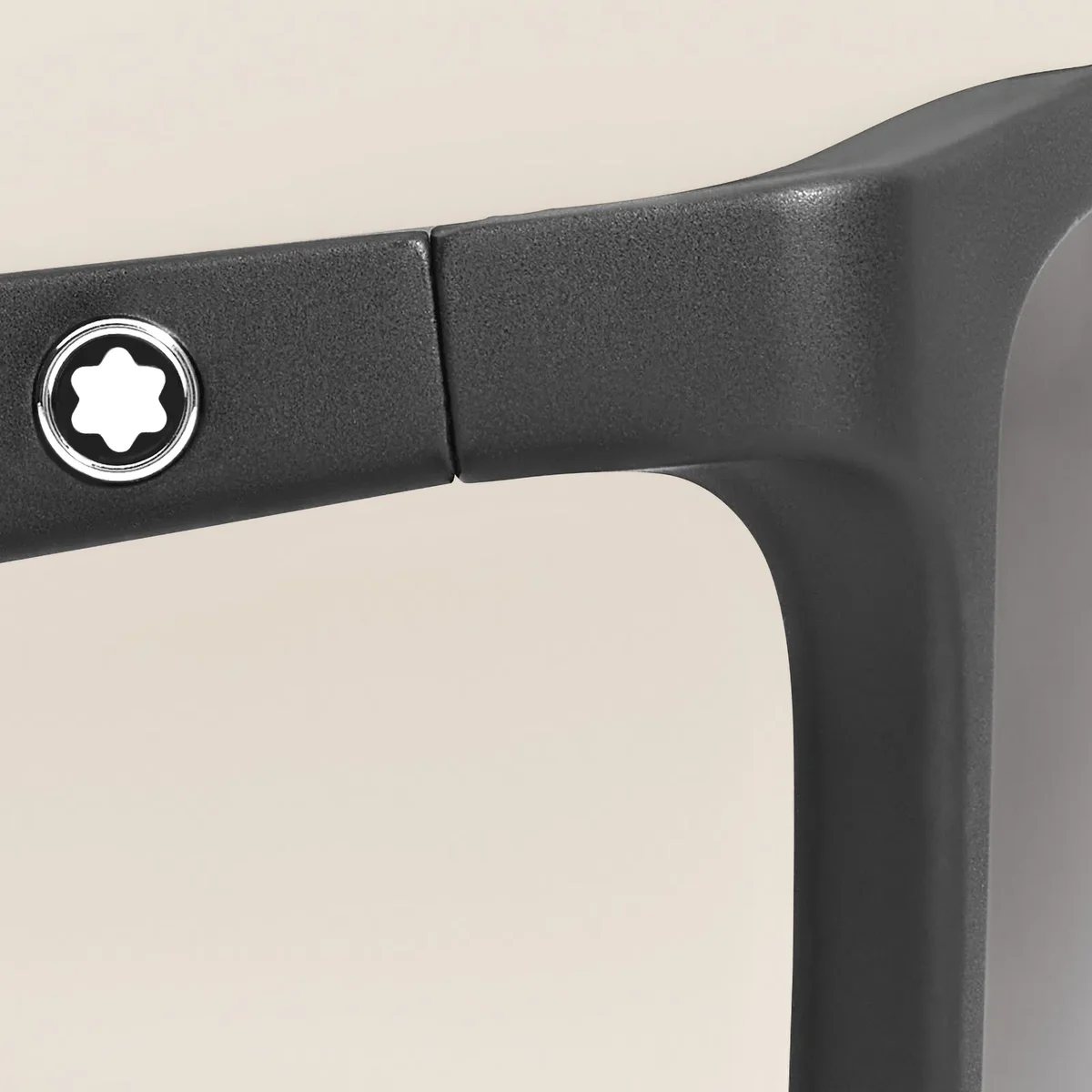 Descubra todos los detalles de las gafas de sol rectangulares con montura de acetato negro. Compre online en la tienda oficial de Montblanc.