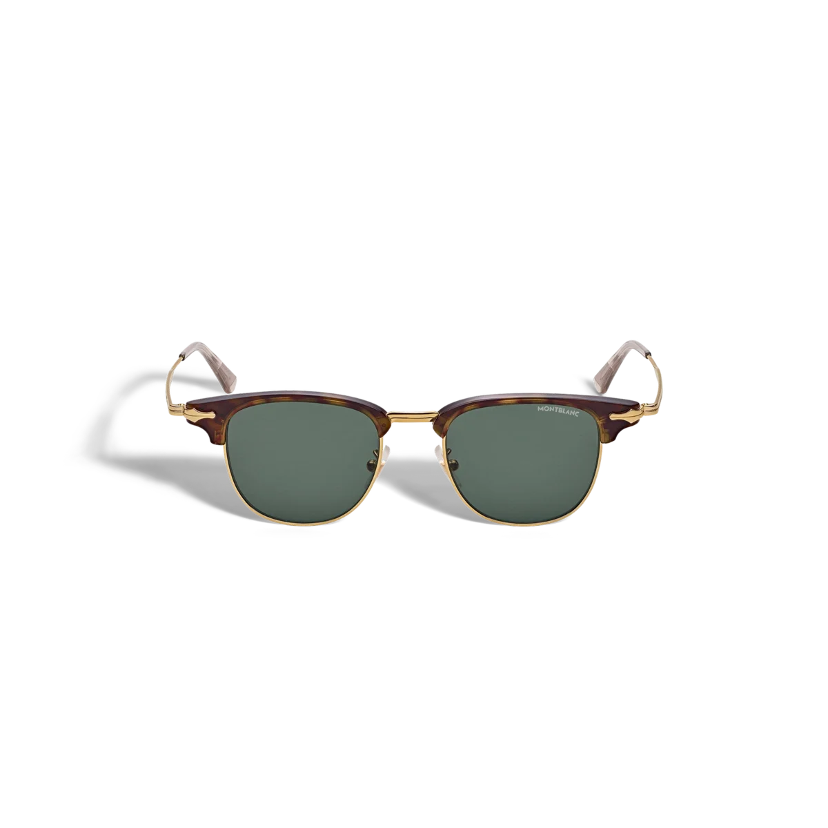 Estas gafas de sol de estilo rectangular tienen una montura metálica dorada y lentes verdes. Inspiradas en el diseño de la plumilla de los instrumentos de escritura, las patillas metálicas presentan un detalle decorativo en forma de plumilla. El logotipo de Montblanc está grabado con láser en la lente izquierda y el patrón antideslizante está grabado con láser en el interior de las puntas de las patillas para aumentar la comodidad.