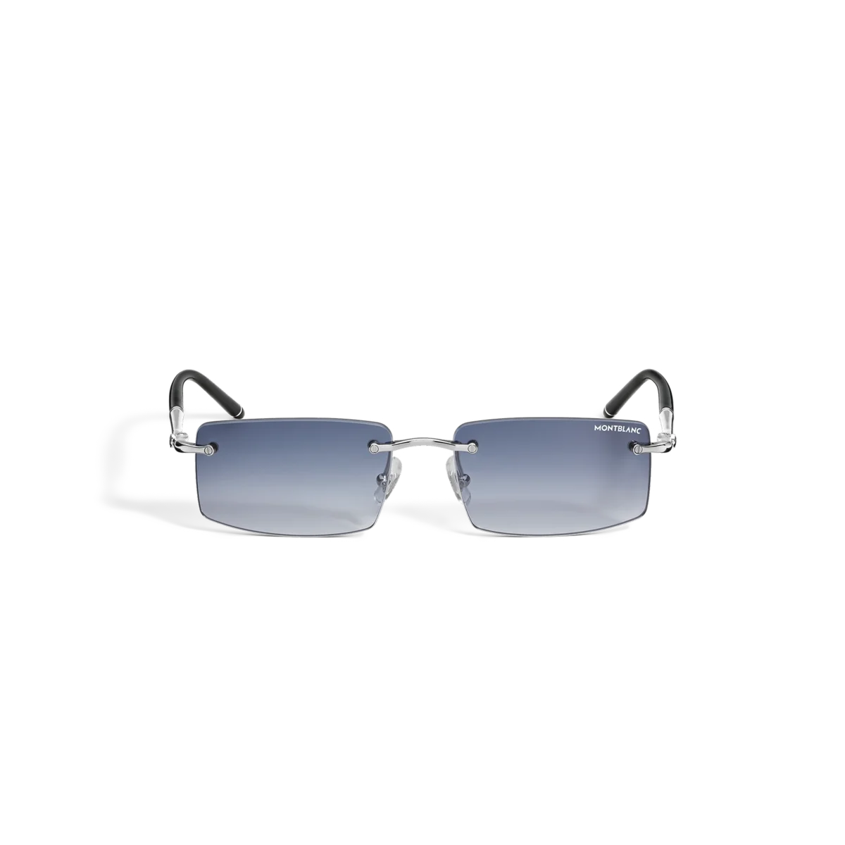 Descubra todos los detalles de las gafas de sol rectangulares con montura metálica plateada. Compre online en la tienda oficial de Montblanc.