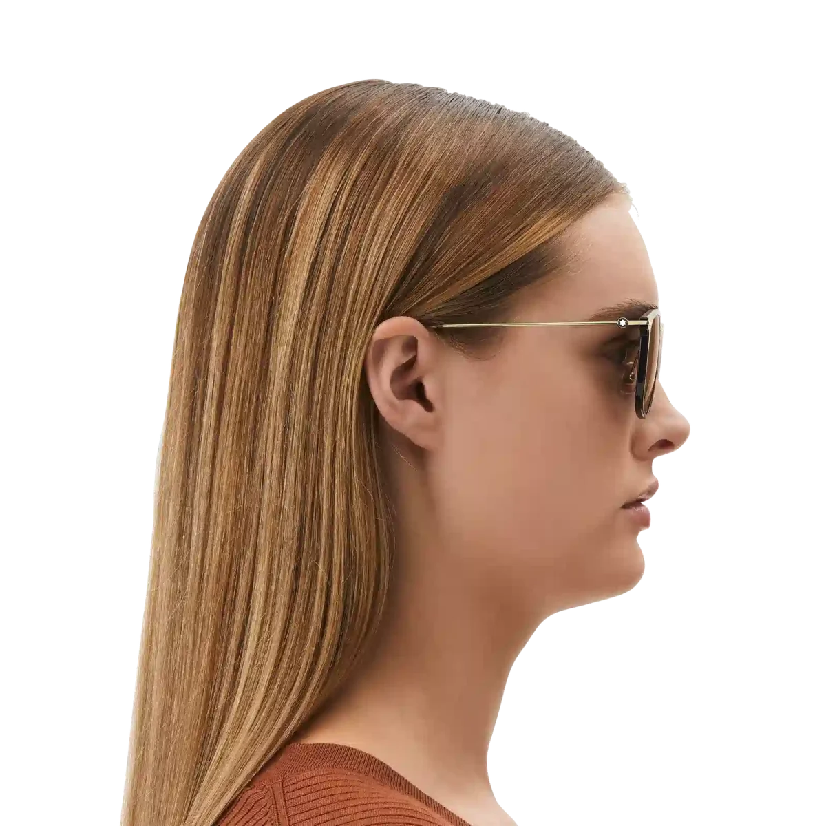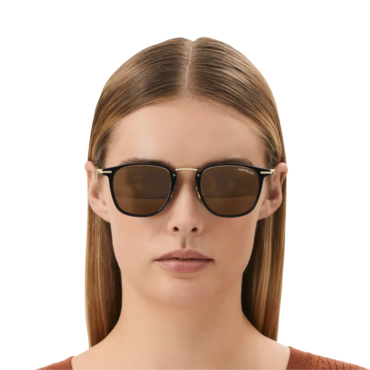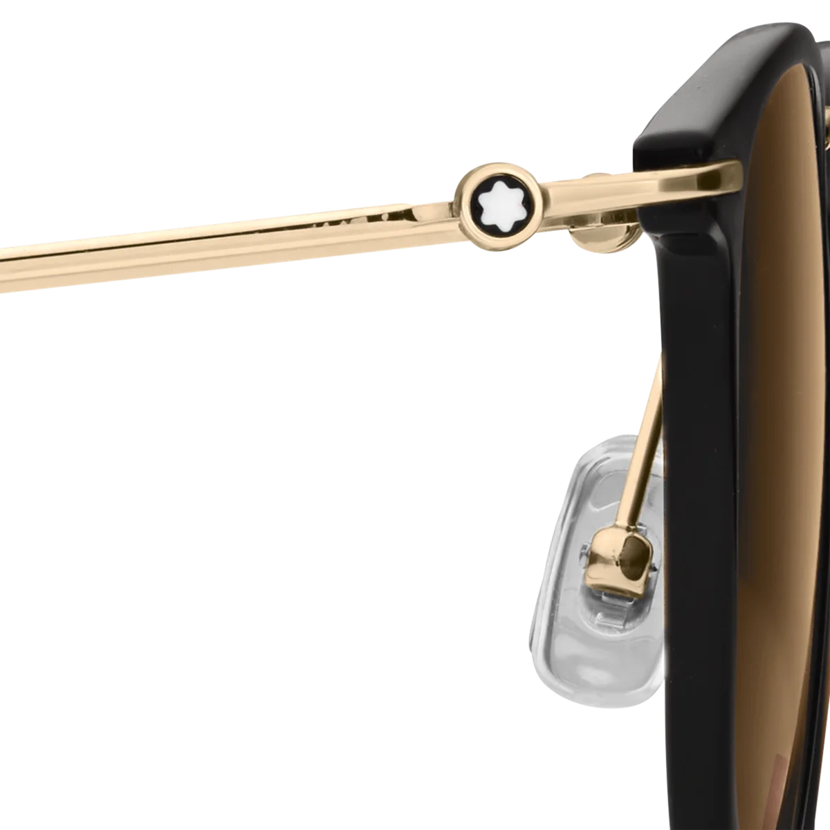 Estas ligeras gafas de sol negras con montura moldeada por inyección en color dorado se caracterizan por su forma redonda. Las lentes marrones aportan un aspecto y un estilo contemporáneos. El logotipo de Montblanc está grabado con láser en la lente izquierda y el patrón antideslizante está grabado con láser en el interior de las puntas de las patillas para aumentar la comodidad.
