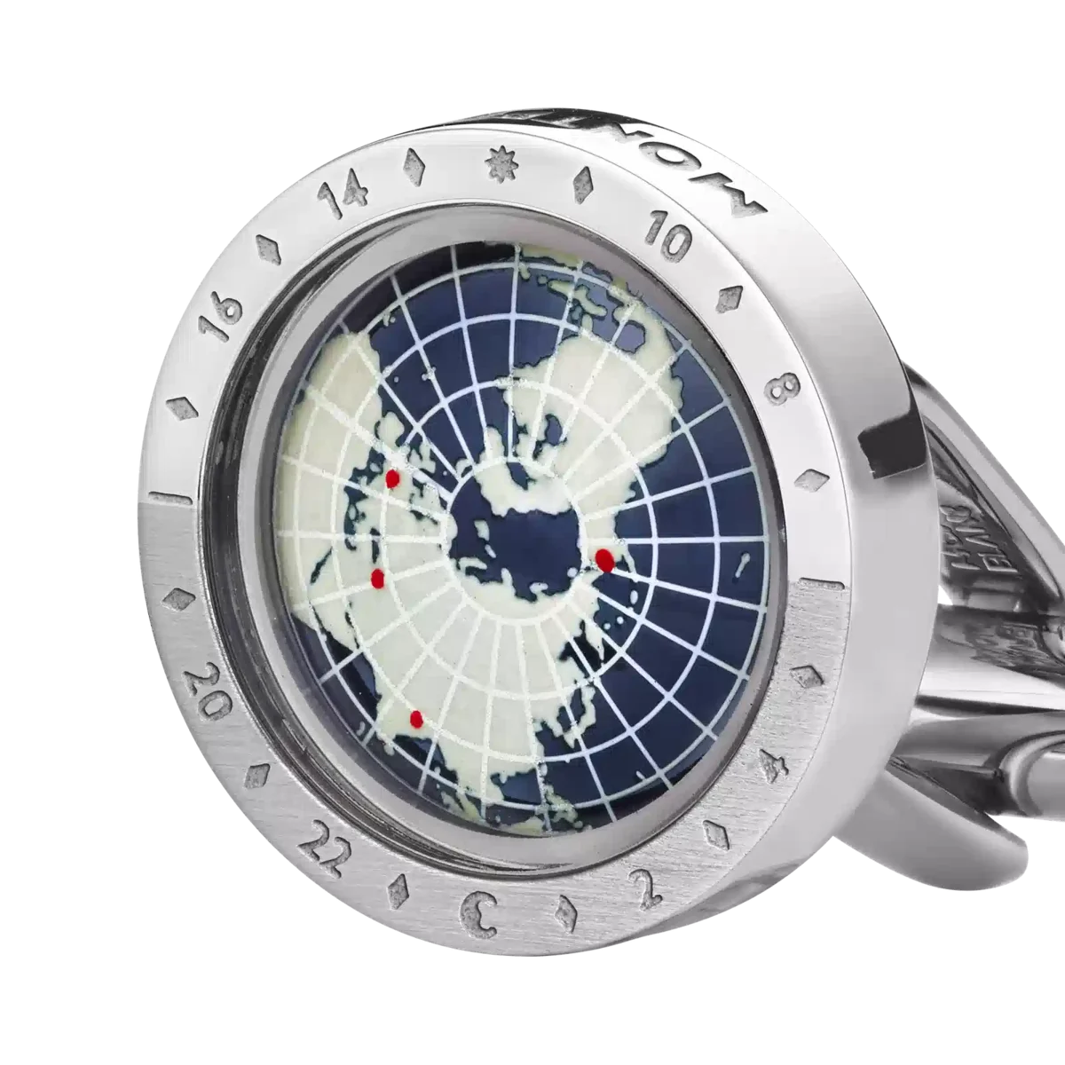 Los gemelos 1858 Geosphere son un reflejo de su época. La pieza hemisférica con todos los detalles crea una joya que revela una constelación, aprovechando el espíritu de mirar las estrellas para encontrar el camino sobre un fondo azul. La colección 1858 Geosphere rinde homenaje al diseño de la colección de relojes Montblanc 1858 Geosphere.