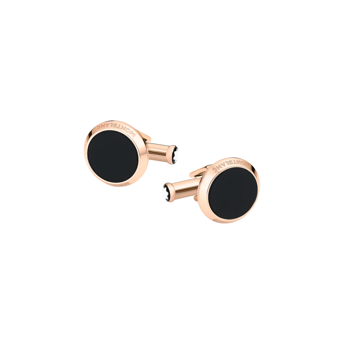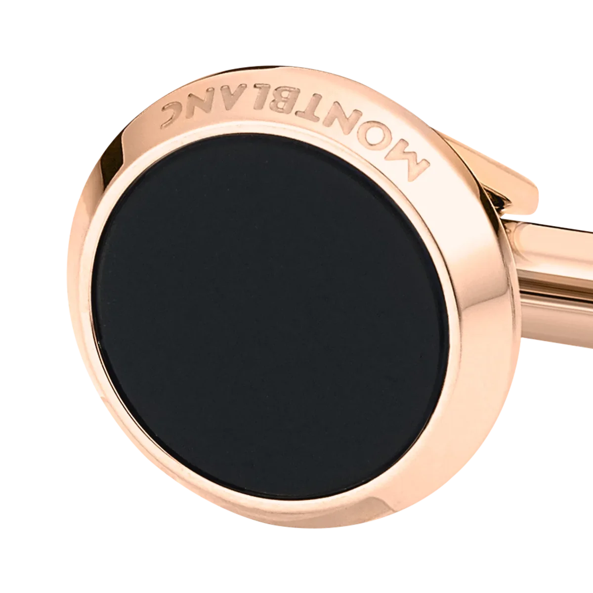 Los gemelos Meisterstück celebran un estilo atemporal. Vinculados al instrumento de escritura Montblanc Meisterstück, la forma redonda atemporal en acero inoxidable con acabado PVD en color oro rosa e incrustaciones de ónix crea una joya con la poderosa firma de Montblanc.