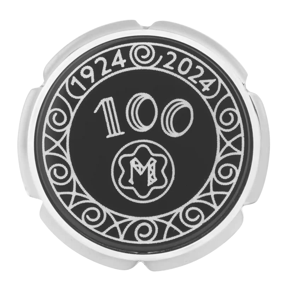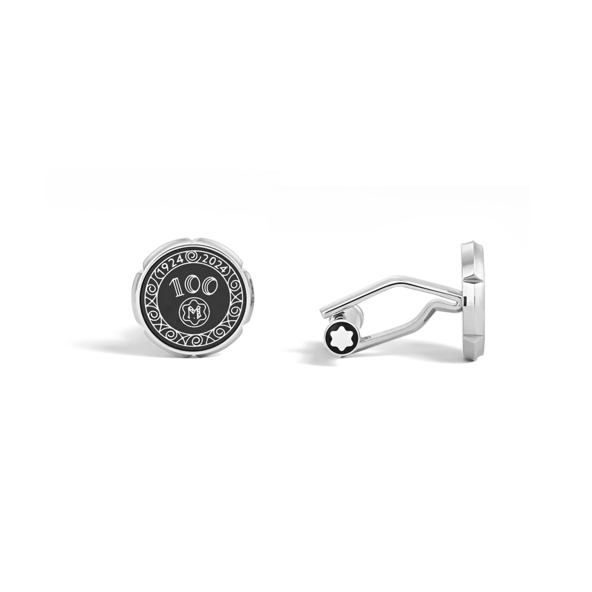 Gemelos de acero inoxidable con decoración Meisterstück 100 años aniversario Nib en incrustación de laca negra