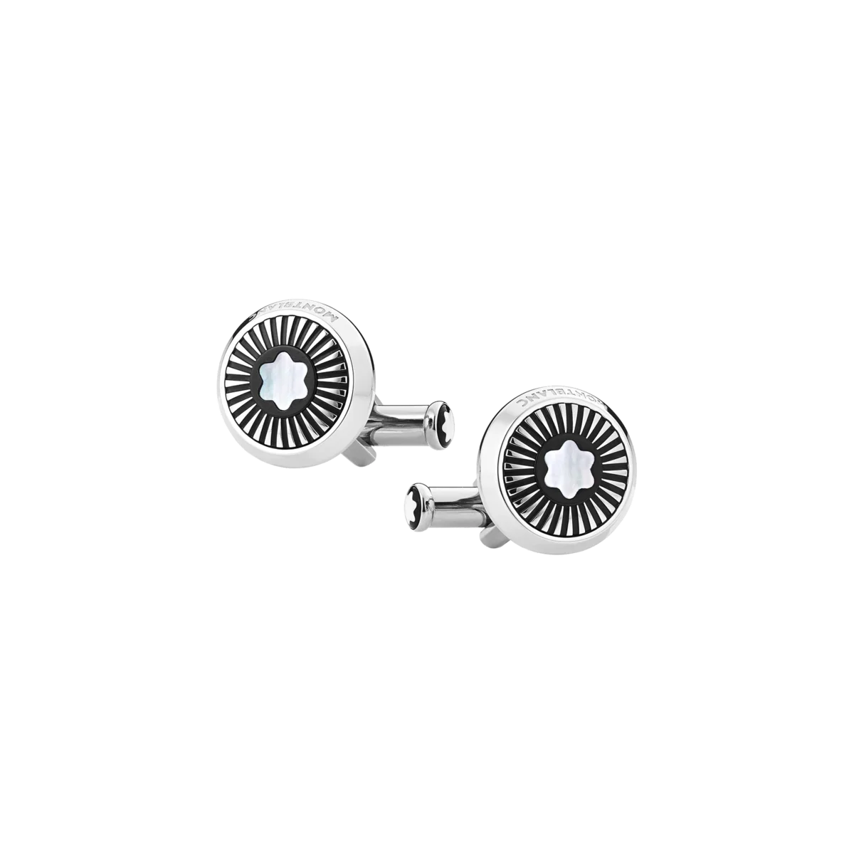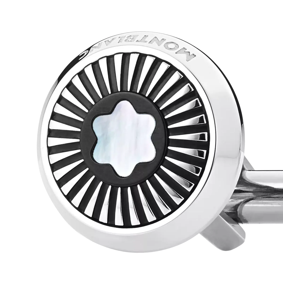 Los gemelos redondos Montblanc Star de acero inoxidable con diseño de rayos y emblema de nieve de nácar se inspiran en los códigos de la Maison. Una colección que presenta el emblema de Montblanc en diferentes interpretaciones.