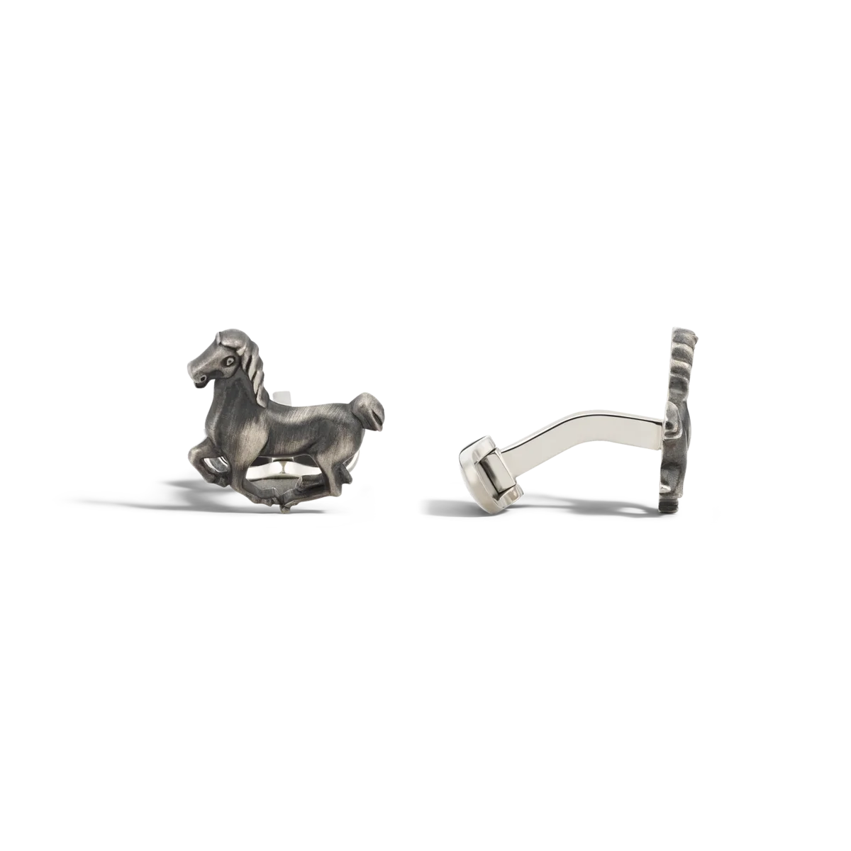 Gemelos de plata dedicados a la colección Legend of Zodiacs The Horse. Esta pieza de joyería está adornada con una hábil recreación de una figura de caballo grabada a mano, en honor tanto al signo del zodíaco como a los veloces caballos de largas patas de la antigua China. De pies ligeros, bien proporcionados y que parecían volar como el viento, se les llamaba «tianma», caballos celestiales. Las primeras referencias los describen como un símbolo de positividad y promesa.