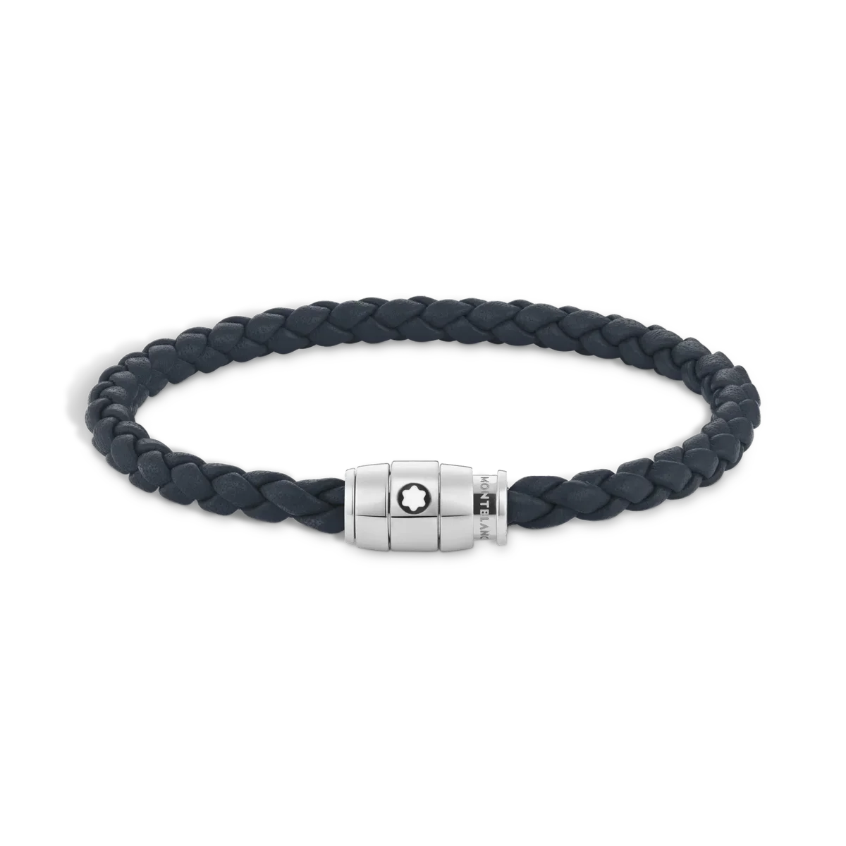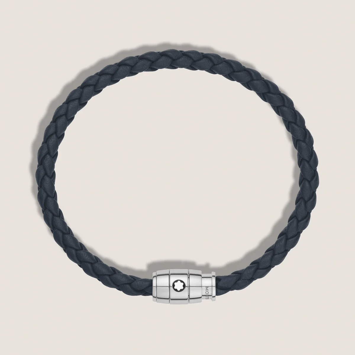Descubra todos los detalles de la pulsera pequeña de piel suave azul avio. Compre online en la tienda oficial de Montblanc.