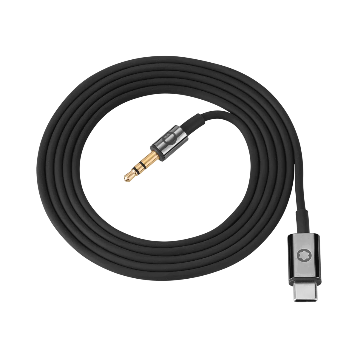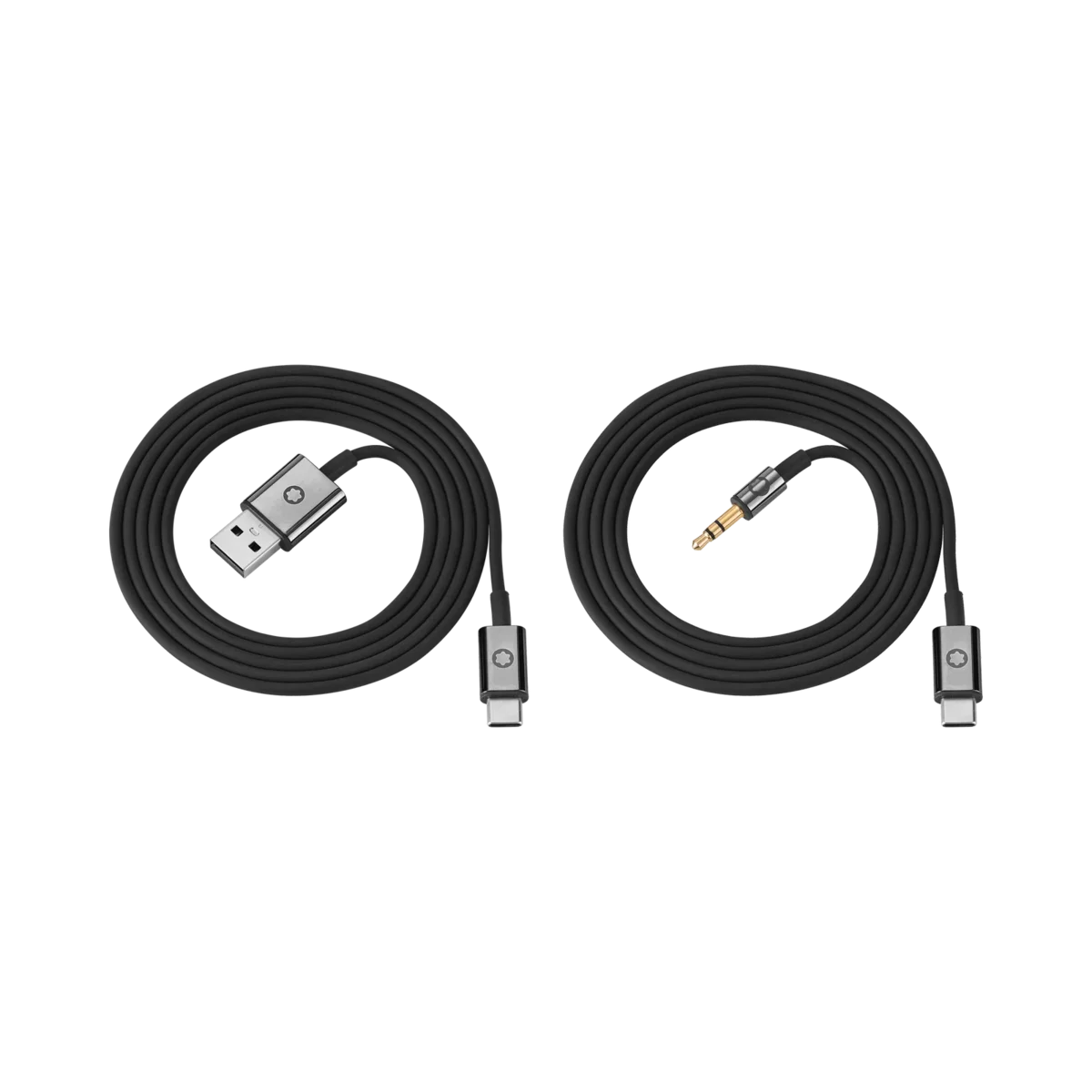 Juego de cables adicional para sus auriculares Montblanc MB 01 que contiene un cable de carga USB-C negro y un cable de audio negro.