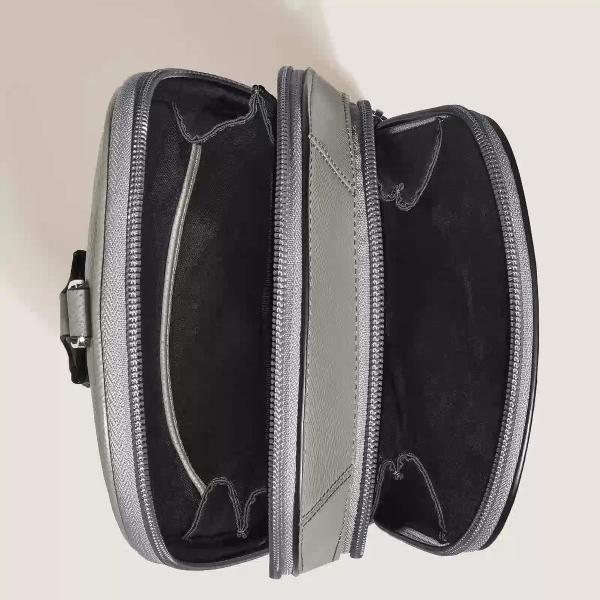 El nuevo bolso bandolera Sartorial, confeccionado en elegante piel Saffiano con relieve gris medio, aporta un toque de modernidad informal a tu look diario. Este funcional accesorio cuenta con un cierre de cremallera seguro y una correa ajustable para mayor comodidad. Ofrece un espacioso compartimento principal, un bolsillo interior con cremallera para objetos de valor y almacenamiento externo que incluye un bolsillo con cremallera, tres bolsillos abiertos y ranuras para tres tarjetas de crédito.