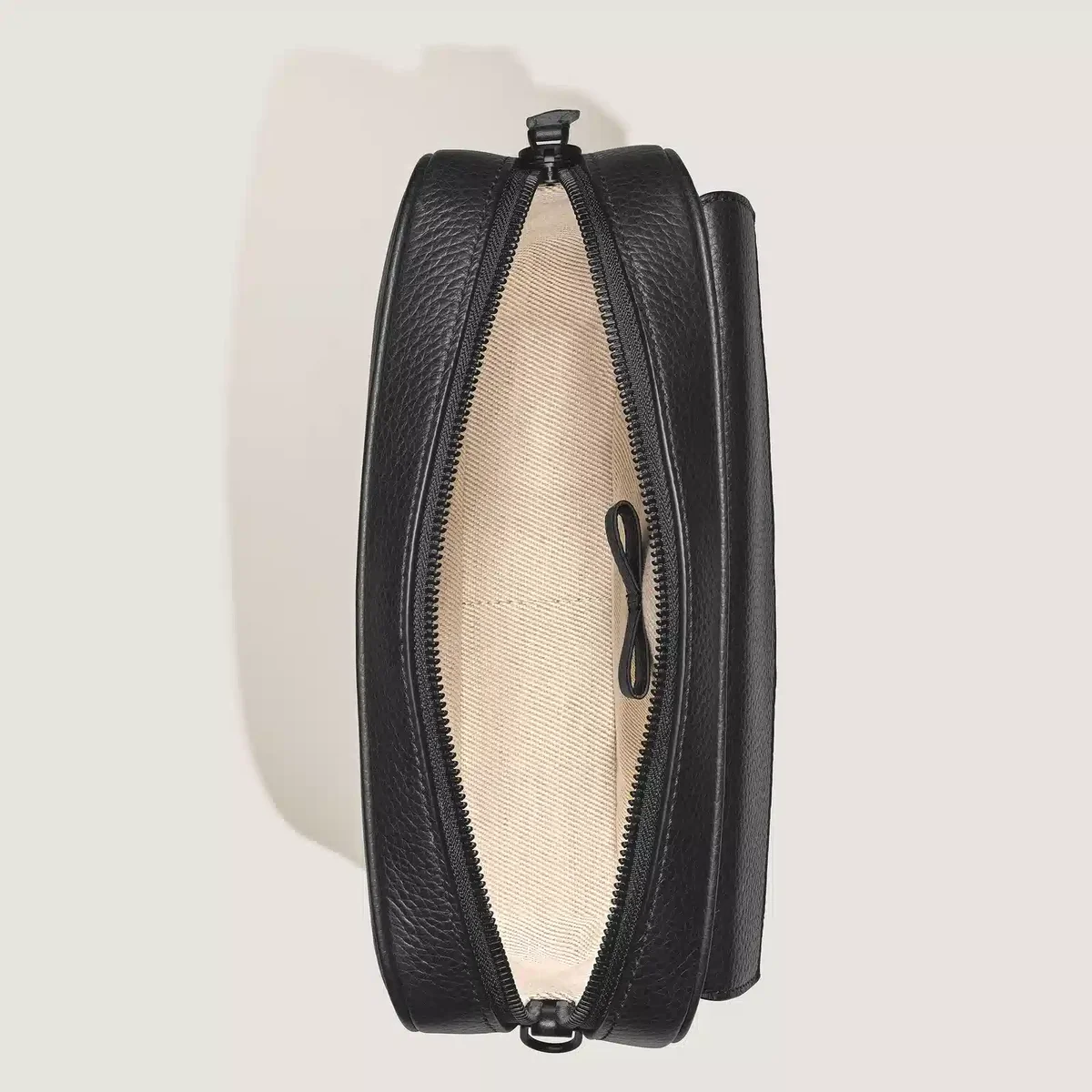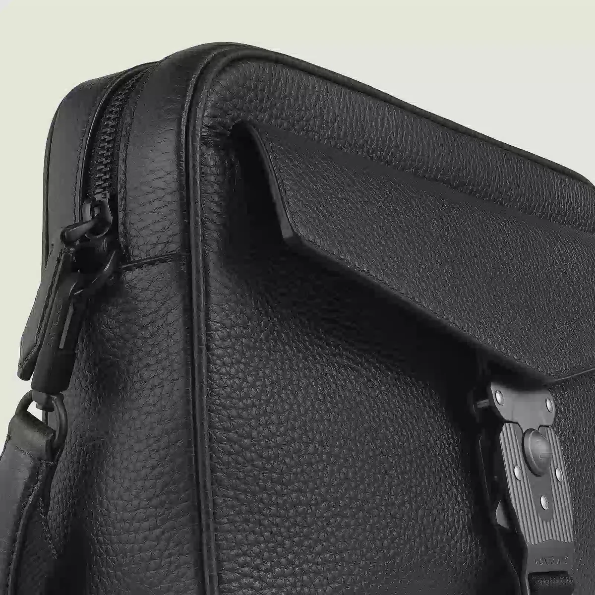 Descubra la elegante bandolera, confeccionada en piel granulada negra con textura pero suave, y con el cierre seguro M LOCK 4810 en la parte delantera. Su diseño incluye un espacioso compartimento principal, un bolsillo delantero de fácil acceso bajo la solapa y un bolsillo interior abierto para mantener sus objetos organizados. Para darle un toque personal, el cierre frontal se puede personalizar para que el bolso sea único y exclusivo. La correa para el hombro ajustable y desmontable garantiza un transporte cómodo y versátil con un estilo desenfadado.