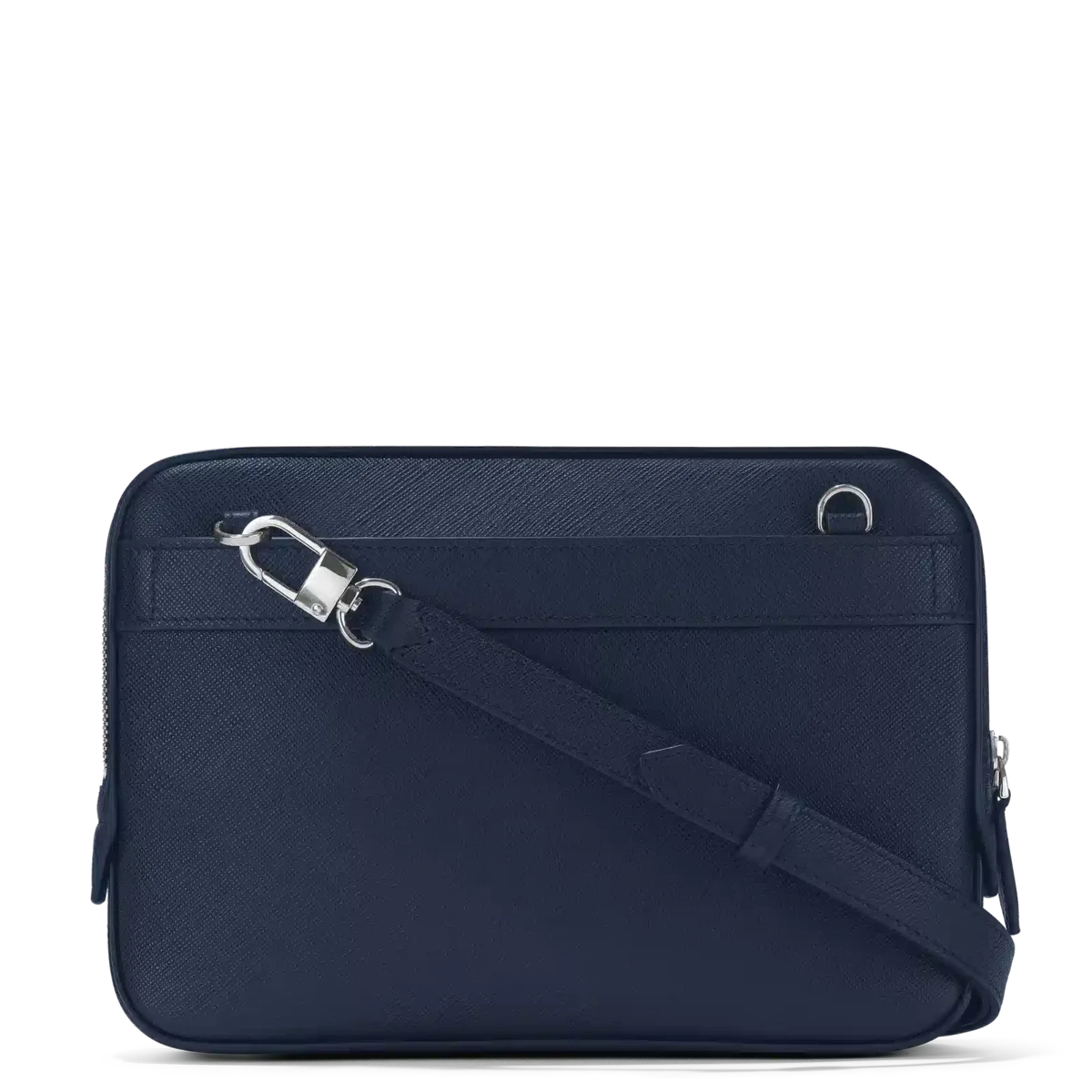 Funcional y versátil, este bolso mensajero compacto, confeccionado en piel Saffiano estampada en azul tinta, se puede llevar en la mano para salir por la ciudad o en bolsos más grandes cuando se está de viaje. Un bolsillo abierto situado en el compartimento interior le permite acceder más rápidamente a sus objetos esenciales. N.º de identificación: MB131718. Dimensiones: 240 mm * 40 mm * 170 mm. Peso físico: 417 g. Aviso legal exportable: los emblemas se centran manualmente. 170 mm