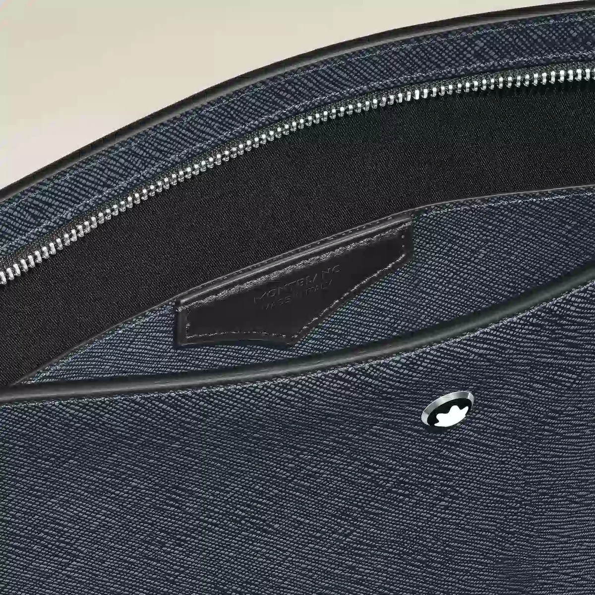 Lleve sus objetos esenciales diarios con estilo con este sofisticado bolso de mano. Fabricado en piel Sartorial repujada en una refinada combinación de dos tonos, azul y negro, cuenta con un espacioso compartimento principal y un bolsillo abierto adicional para mayor comodidad. Versátil y elegante, se puede llevar en la mano, bajo el brazo o en la muñeca gracias a su asa desmontable. Identificación n.º MB220428 Dimensiones 240 mm * 45 mm * 200 mm