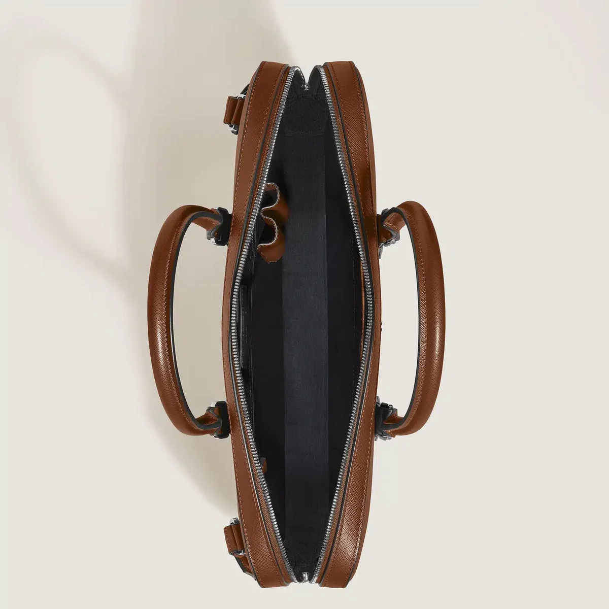 Este fino maletín para documentos combina la tradición de Montblanc en el mundo de la escritura con una funcionalidad elegante y moderna. Fabricado en piel Sartorial repujada en color fauve, está diseñado para satisfacer las necesidades empresariales. El espacioso compartimento principal ofrece un amplio espacio para archivos A4, dispositivos electrónicos e instrumentos de escritura. La correa desmontable y ajustable ofrece múltiples opciones de transporte, lo que la convierte en una opción refinada y práctica para los profesionales.