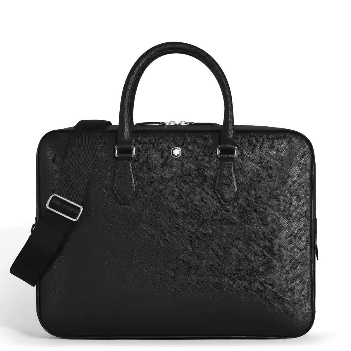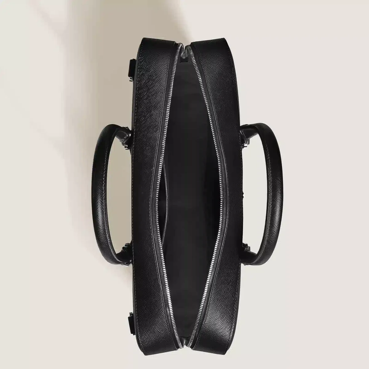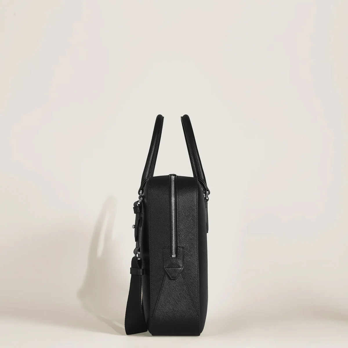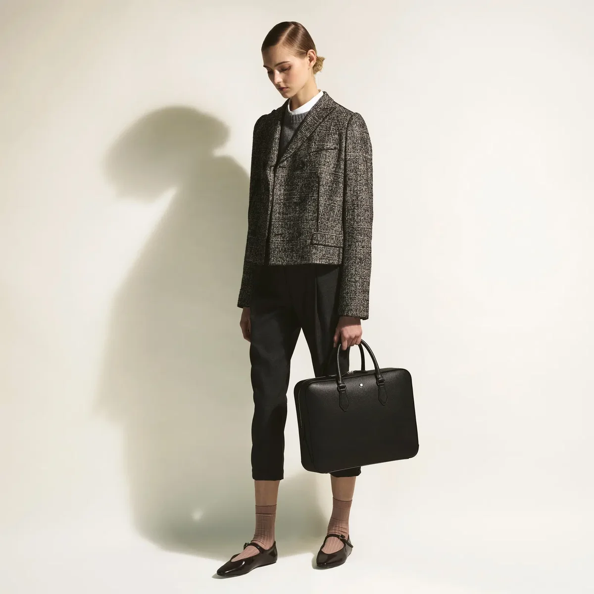 Este elegante maletín cuenta con un espacioso compartimento principal para transportar documentos A4, dispositivos electrónicos y otros artículos profesionales con estilo. Los instrumentos de escritura se pueden guardar en bolsillos específicos, mientras que el diseño modular adaptable permite acoplarla a otros bolsos de la colección Sartorial. La lujosa piel estampada le da un aire sofisticado.