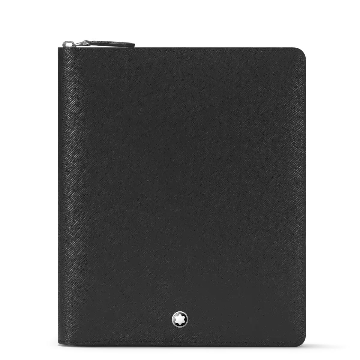 Este elegante complemento para reuniones, viajes de negocios y otras ocasiones está diseñado para guardar fácilmente un bloc de notas A5 (MB9596). Con textura de refinada piel estampada Saffiano, su cierre con cremallera garantiza la seguridad de los documentos importantes. La parte delantera exterior presenta el emblema de Montblanc en un nuevo tamaño más grande. N.º de identificación: MB136840