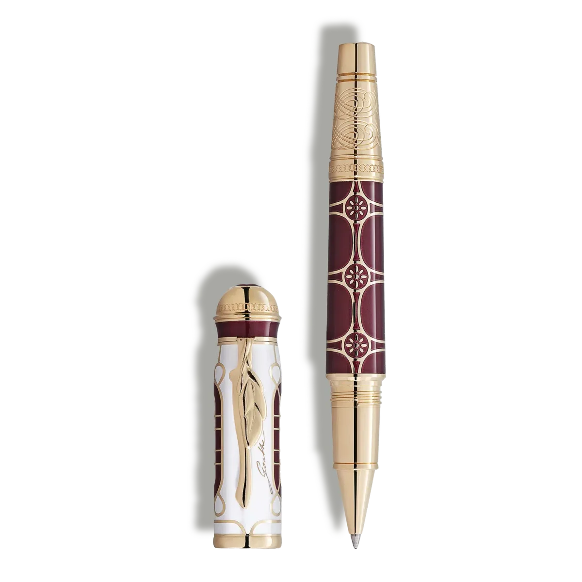 En el centro del despertar intelectual del siglo XVIII se encontraba un hombre en particular cuyas palabras escritas han resistido el paso del tiempo: Johann Wolfgang von Goethe. Erudito, gigante de la literatura alemana, abogado, ministro del Gobierno, director de teatro, así como prodigioso coleccionista y naturalista, fue en todos los sentidos un revolucionario, decidido a ampliar los límites de la percepción y el aprendizaje. Impulsado por una insaciable sed de conocimiento, su versatilidad creativa no conocía límites. La profundidad filosófica de Fausto, la sutileza lírica de su poesía y la amplitud de la exploración científica que subyace a su teoría del color y sus tratados botánicos tuvieron una importancia trascendental y dan testimonio, por su variedad y su influencia de gran alcance, del genio de Goethe. Como poeta y estadista, consejero, amigo y amante, dejó una huella indeleble en el mundo que le rodeaba y sigue siendo hoy en día una fuente de inspiración y visión. Con el apoyo de la Klassik Stiftung Weimar y el Museo Nacional Goethe que alberga, Montblanc dedica su Writers Edition Homage to Johann Wolfgang von Goethe Limited Edition 1808 a este genio universal, centrándose especialmente en su papel como estadista. Goethe marcó su época con sus palabras y sus actos. La edición más completa de sus obras y escritos comprende actualmente 40 volúmenes, que contienen alrededor de 3000 poemas. Su drama Götz von Berlichingen se publicó de forma anónima en 1773, pero solo un año después, Las desventuras del joven Werther, escrita en menos de cuatro semanas, catapultó a la fama al abogado de 25 años. Su reputación no pasó desapercibida en Weimar, donde el joven duque, Karl August, estaba deseoso de transformar su ducado en una «Corte de las Musas». El traslado de Goethe a Weimar marcó un punto de inflexión en su vida. Allí ya no solo se le consideraba un renombrado poeta y filósofo, sino que también actuó como estadista y reformador, reactivando la tradición de la minería de plata, reorganizando la política económica y fiscal y ascendiendo rápidamente hasta convertirse en el principal asesor del duque. Goethe fue ennoblecido en 1782 en reconocimiento a sus servicios a la corte de Weimar y en 1816 fue galardonado con la Orden del Halcón Blanco, también conocida como la Orden de la Vigilancia. Esta insignia en forma de estrella fue la inspiración para el adorno recubierto de oro del cuerpo del modelo de edición limitada. La laca rojo carmín que hay debajo hace referencia al color de la banda ceremonial que Goethe lleva en el retrato de Gerhard von Kügelgen. El patrón dorado que rodea el capuchón se asemeja a los arcos redondeados que aparecen de forma tan destacada en un grabado de Rembrandt adaptado para el frontispicio del «fragmento de Fausto» de Goethe de 1790. La figura de Fausto ocupó a Goethe durante casi toda su vida. Escribió una primera versión, Urfaust, luego un Fragmento y, finalmente, su mundialmente famosa obra Fausto I, publicada en 1808. Insuperable en su elocuencia y relevancia global, esta obra es una verdadera obra maestra de la literatura universal. El propio Goethe acuñó el término «literatura universal», utilizándolo para referirse a una expresión de universalidad que trasciende todas las barreras lingüísticas, étnicas y temporales. Como símbolo del concepto de «literatura universal» de Goethe, el capuchón tiene la forma de un globo terráqueo, coronado por el emblema de Montblanc. La forma ligeramente curvada del capuchón, que recuerda a un frasco de vidrio de farmacia antiguo, es un homenaje a los logros de Goethe como científico y coleccionista. El clip en forma de hoja y la firma grabada rinden homenaje a sus extraordinarios estudios en el campo de la morfología y, en concreto, a su propuesta de una forma vegetal arquetípica. Incluso trasladó esta idea a la poesía en su didáctico poema de amor La metamorfosis de las plantas. Esta y todas sus otras reflexiones y descubrimientos quedaron plasmados en papel utilizando el tipo de preciados instrumentos de escritura que inspiraron el aspecto histórico de toda la Writers Edition. A diferencia del propio Goethe, cuyos estudios sirvieron para avanzar en la investigación científica, su homólogo ficticio estaba plagado de dudas. Fausto, al no conseguir sus propios objetivos académicos, recurre a la magia e invoca al «espíritu de la tierra». La dramática escena en la que la luz que irradia esta presencia abrumadora llena la cámara fue capturada en uno de los bocetos del propio Goethe, modelo para el grabado de la punta del cono. Otros grabados alrededor del cono están tomados de los adornos de su certificado de nombramiento como consejero privado de la legación en Weimar. Como guiño al año de publicación de Fausto I, un hito en el teatro alemán y una de las obras dramáticas más traducidas y representadas del mundo, la edición limitada consta de solo 1808 piezas.