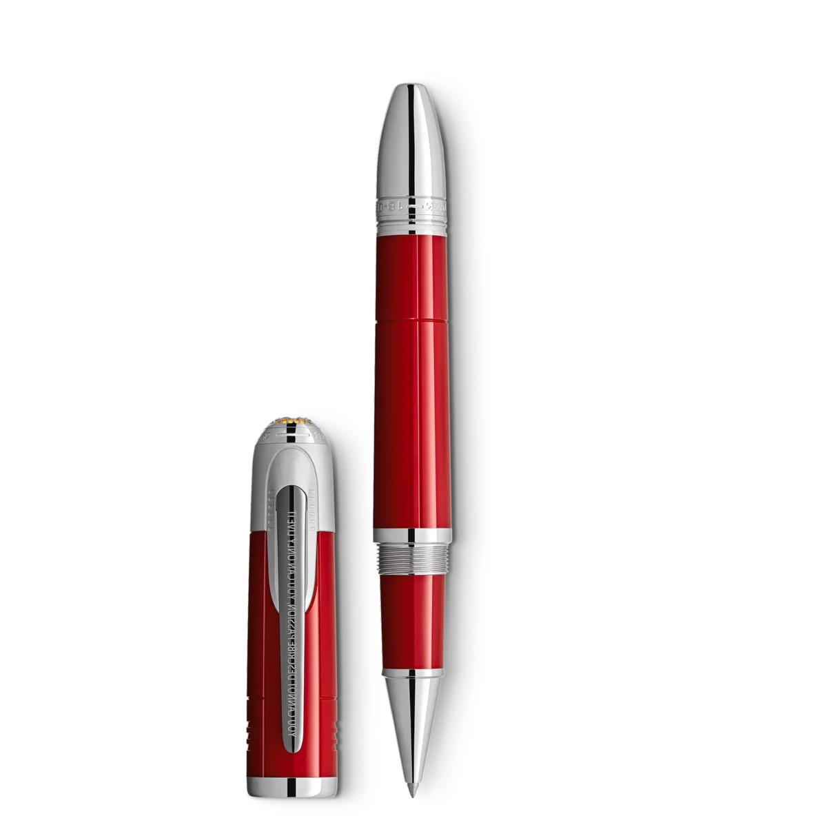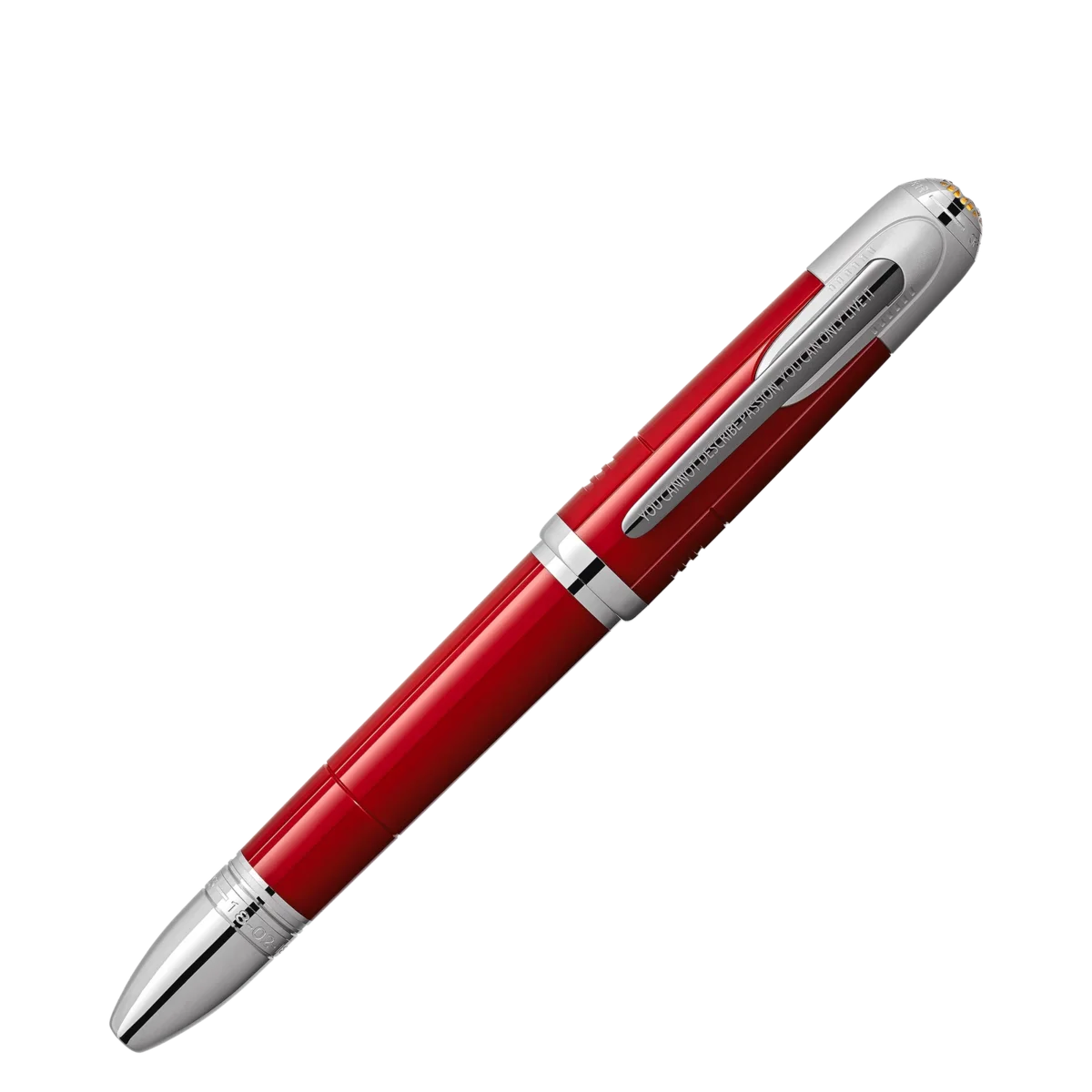 En 2021, Montblanc rinde homenaje al visionario Enzo Ferrari, piloto de carreras y empresario que fundó la legendaria Scuderia Ferrari y creó un imperio automovilístico mundial cuyo nombre se ha convertido en sinónimo de excelente calidad y pasión por la velocidad. Fabricada en resina preciosa roja, esta edición simboliza el inicio de la pasión de Enzo Ferrari por las carreras de coches. Su color se inspira en el «Rosso 70 Anni», un color rojo especial que representa varios tonos rojos icónicos a lo largo de los años, desarrollado inicialmente para celebrar el 70.º aniversario de la Scuderia Ferrari. La parte superior del capuchón está coronada con un emblema de Montblanc incrustado en una rejilla metálica sobre una superficie amarilla, en homenaje al lugar de nacimiento de Ferrari, Modena, Italia. El caballo rampante, el famoso emblema de los coches Ferrari, aparece representado en la parte posterior del capuchón. El clip metálico está adornado con una famosa cita de Enzo: «La pasión no se puede describir, solo se puede vivir». El cono muestra dos fechas importantes en los inicios de la carrera de Enzo Ferrari. N.º de identificación: MB132145. Peso físico: 55,12 g. Dimensiones: 147,5 mm × 17,5 mm.