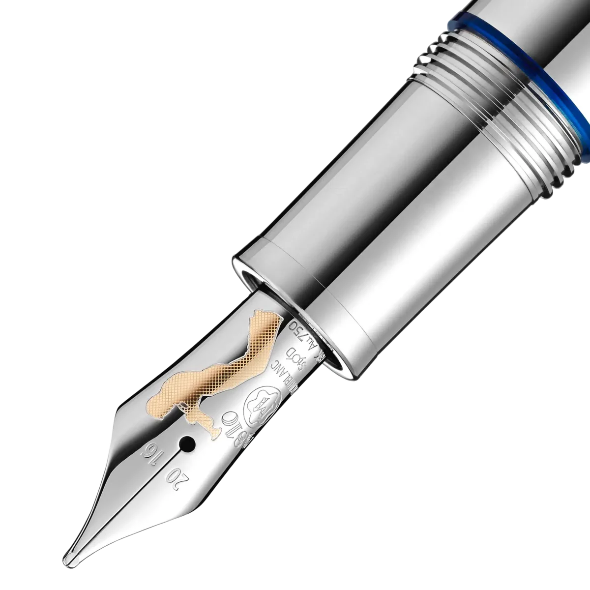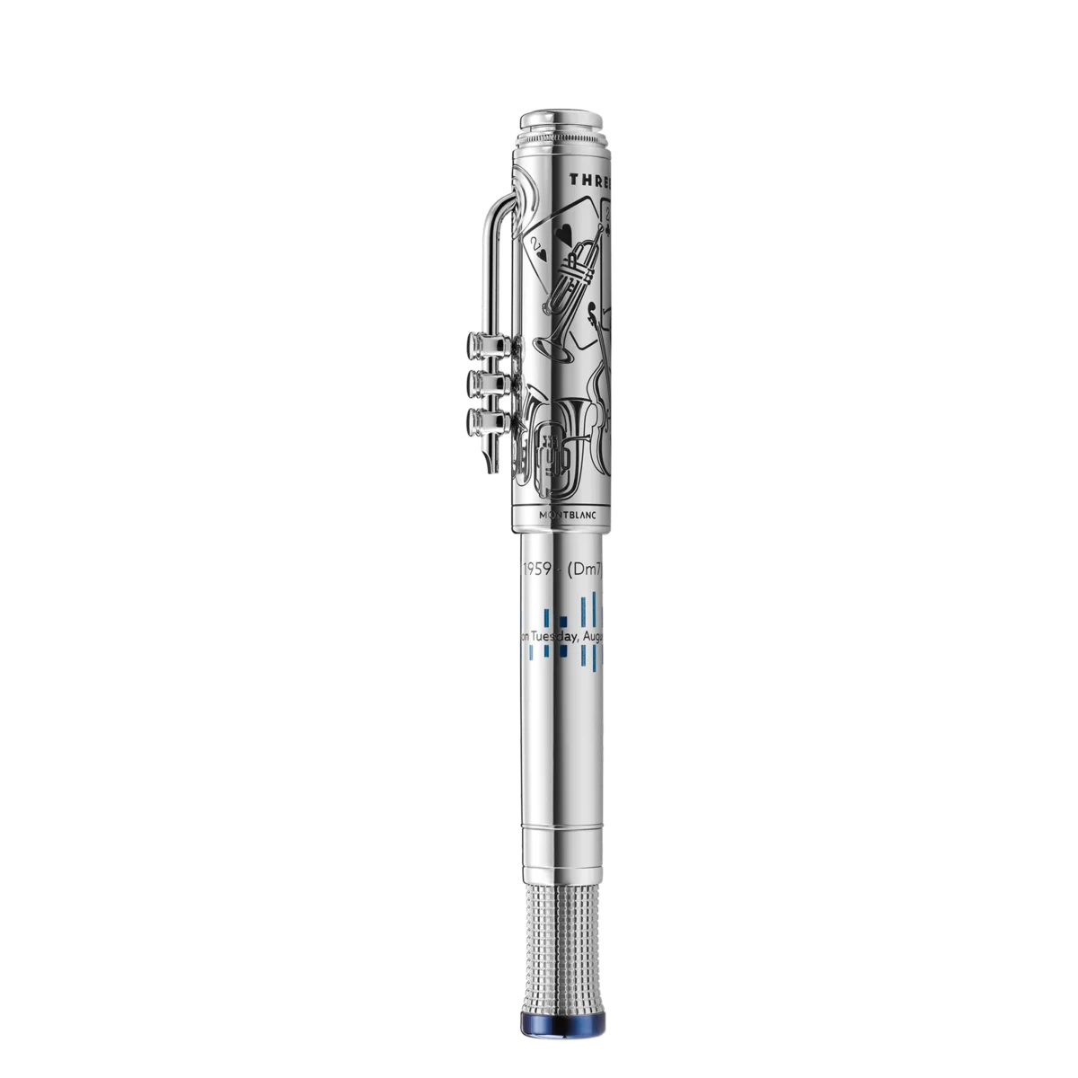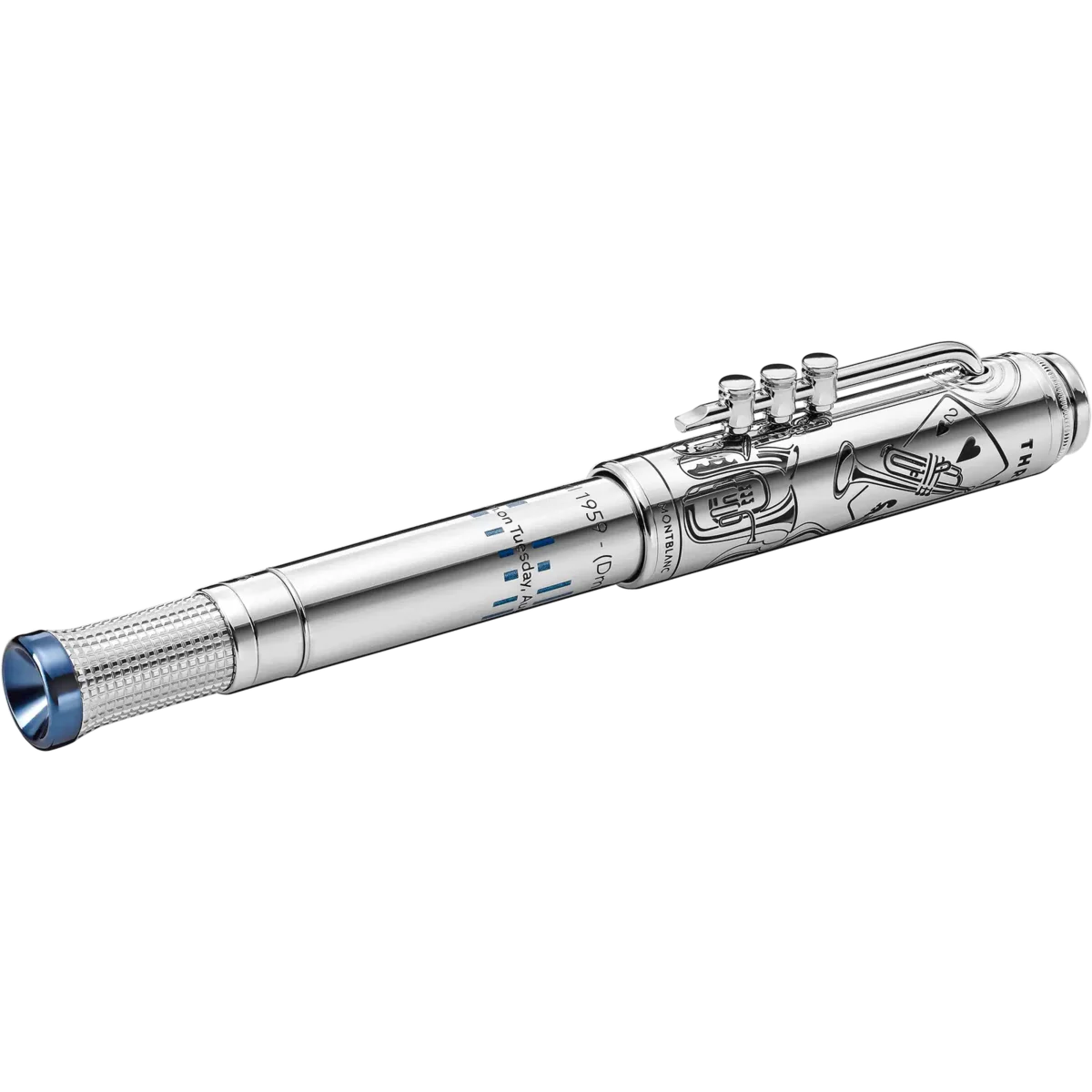Esta edición Great Characters rinde homenaje a uno de los músicos de jazz más revolucionarios e influyentes de todos los tiempos: Miles Dewey Davis. No solo fue un trompetista con un sonido excepcional, sino también un pionero en prácticamente todas las fases de la evolución del jazz estadounidense posterior a la Segunda Guerra Mundial, desde el cool jazz hasta la fusión de rock, jazz y funk que le llevó a ser incluido en el Salón de la Fama del Rock & Roll. La forma general de la edición limitada 1926 refleja la trompeta, enfatizada a través de los botones de los dedos de la trompeta en el clip. El exclusivo y refinado grabado del cuerpo está inspirado en las principales fases de la evolución del jazz estadounidense posterior a la Segunda Guerra Mundial, en la que Miles Davis tuvo una gran influencia. El cono azul recuerda a «Kind of Blue», el mejor álbum de jazz de todos los tiempos. La forma del cono proviene de la boquilla especial «Heim» que utilizaba para tocar. La plumilla está grabada con su silueta y la limitación de 1926 piezas refleja el año de su nacimiento. N.º de identificación: MB114191 Peso físico: 88,65 g Dimensiones: 145 mm * 16 mm * 16 mm