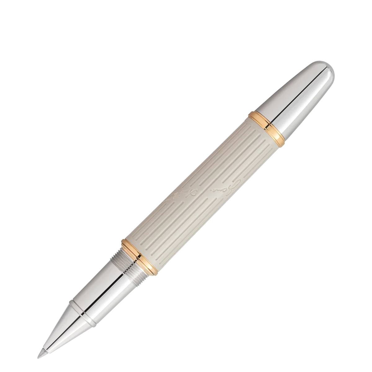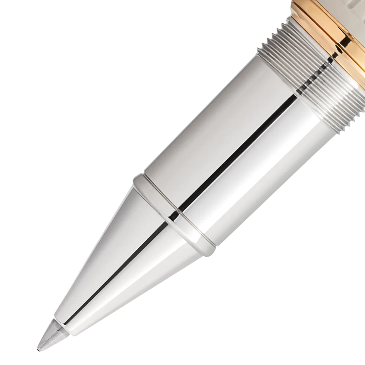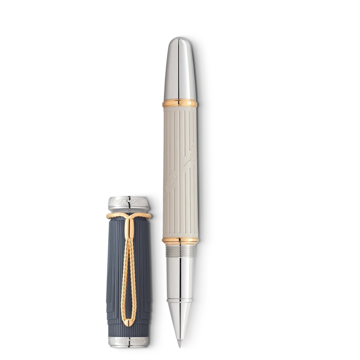 Pocos autores en la historia de la literatura han tenido la capacidad de crear diálogos y dar vida a los personajes con tanta elegancia, ironía y astucia como la autora británica Jane Austen. Montblanc ha creado la Writers Edition Homage to Jane Austen para rendir homenaje a una de las autoras más famosas de la literatura inglesa.Esta edición da vida a la época de la Regencia, cuando las nobles fincas rurales eran el escenario de grandes fiestas celebradas con el fin de cultivar las relaciones sociales y forjar alianzas matrimoniales. Las estrías de una columna clásica adornan el elegante cuerpo de resina gris arenisca, junto con la firma de Jane Austen. El contraste del capuchón gris azulado hace referencia al tipo de abrigo de doble cuello de la Regencia que solían llevar caballeros como el señor Darcy en Orgullo y prejuicio. Los anillos recubiertos de oro del cuerpo y los accesorios chapados en platino añaden los toques finales al diseño. El grabado de los números romanos XLIII en el anillo del capuchón hace referencia al capítulo de la novela en el que Elizabeth Bennet ve por primera vez la finca del señor Darcy.La portada de su novela Sentido y sensibilidad, publicada en 1811, simplemente declaraba que la obra había sido escrita «por una dama». Esta declaración de autoría adorna la parte superior del capuchón de la Writers Edition Homage to Jane Austen Limited Edition, junto con el emblema de Montblanc. La silueta del instrumento de escritura se asemeja a un sello de cera. El clip es tan inusual como el capuchón. Con forma de cordón trenzado con cierre de cordón, se asemeja al de una «retícula», un tipo de bolso que utilizaban las mujeres alrededor de 1800 para llevar sus polvos, espejo y el indispensable pañuelo de bolsillo.