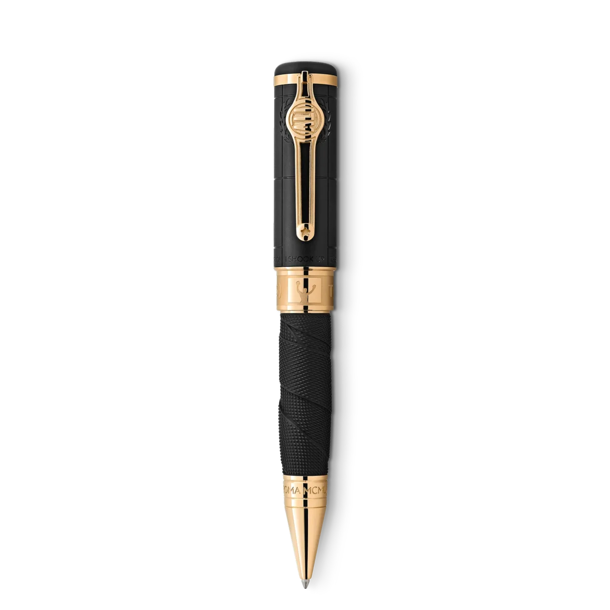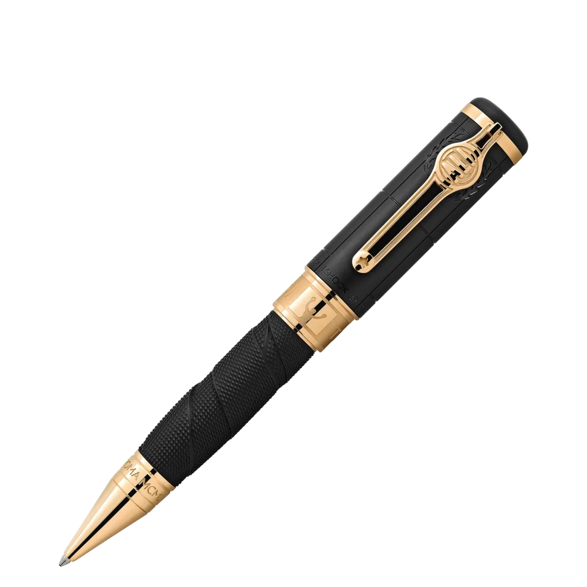 Pocos atletas son tan celebrados y honrados como el tres veces campeón del mundo de peso pesado Muhammad Ali, cuyos momentos legendarios en el deporte y el activismo por los derechos civiles lo convirtieron en uno de los atletas y humanitarios más influyentes del siglo XX. Como deportista, Ali conmocionó al mundo con su fuerza, habilidad y personalidad, convirtiéndose en campeón mundial de peso pesado con solo 22 años. Sin embargo, sus mayores logros fueron el resultado de sus esfuerzos humanitarios. Fabricado en preciosa resina negra, el capuchón se asemeja a un saco de boxeo, mientras que el cuerpo parece la cinta que los deportistas utilizan para vendarse las manos. El capuchón presenta varios elementos de diseño, como una famosa exclamación de Ali y una mariposa inspirada en su característico estilo de lucha: «Flota como una mariposa, pica como una abeja». El cono puntiagudo retoma esa idea y tiene grabadas cuatro líneas que representan las cuerdas de un ring de boxeo. Las inscripciones en la punta del bolígrafo hacen referencia a la victoria de Ali en los Juegos Olímpicos de Roma de 1960 y a su primer campeonato mundial de peso pesado, que ganó en Miami en 1964. Los detalles de su victoria, concretamente que ganó en el séptimo asalto por nocaut técnico, se pueden encontrar en el anillo del capuchón. Para celebrar su primer título, el emblema de Montblanc en resina blanca está adornado con un «1». Para subrayar este éxito, el clip tiene la forma de un cinturón de campeón de boxeo y lleva su nombre. N.º de identificación: MB129335. Peso físico: 60,57 g. Dimensiones: 140 mm * 17,3 mm.