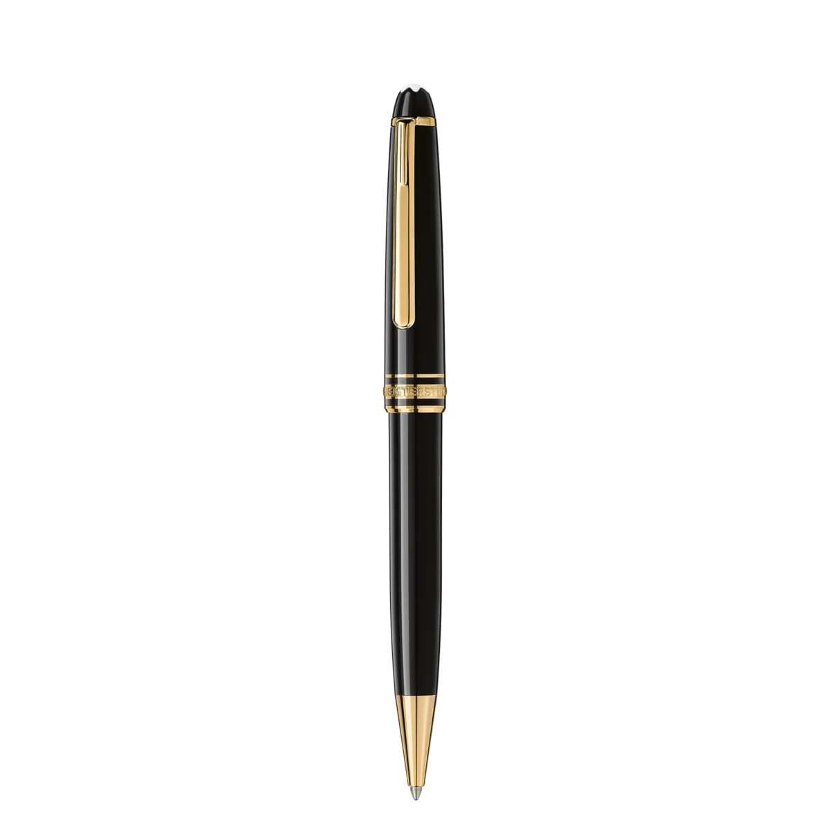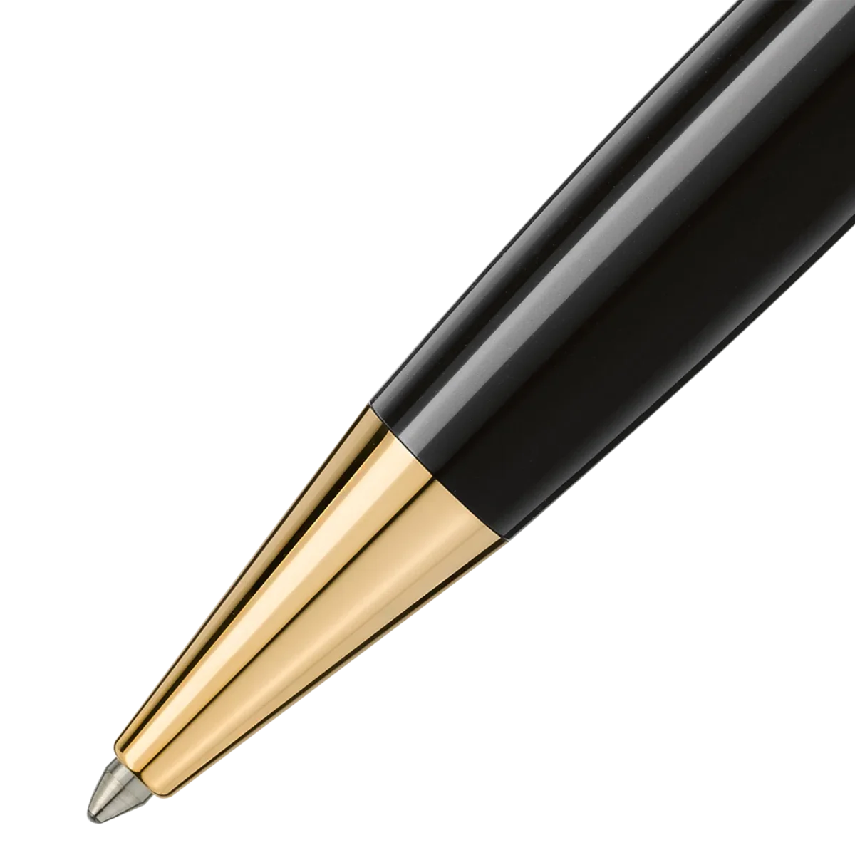 La Meisterstück Classique, fabricada en resina preciosa de color negro intenso con detalles chapados en oro y coronada por el emblema de la estrella blanca, se convierte en un icono de diseño distintivo.