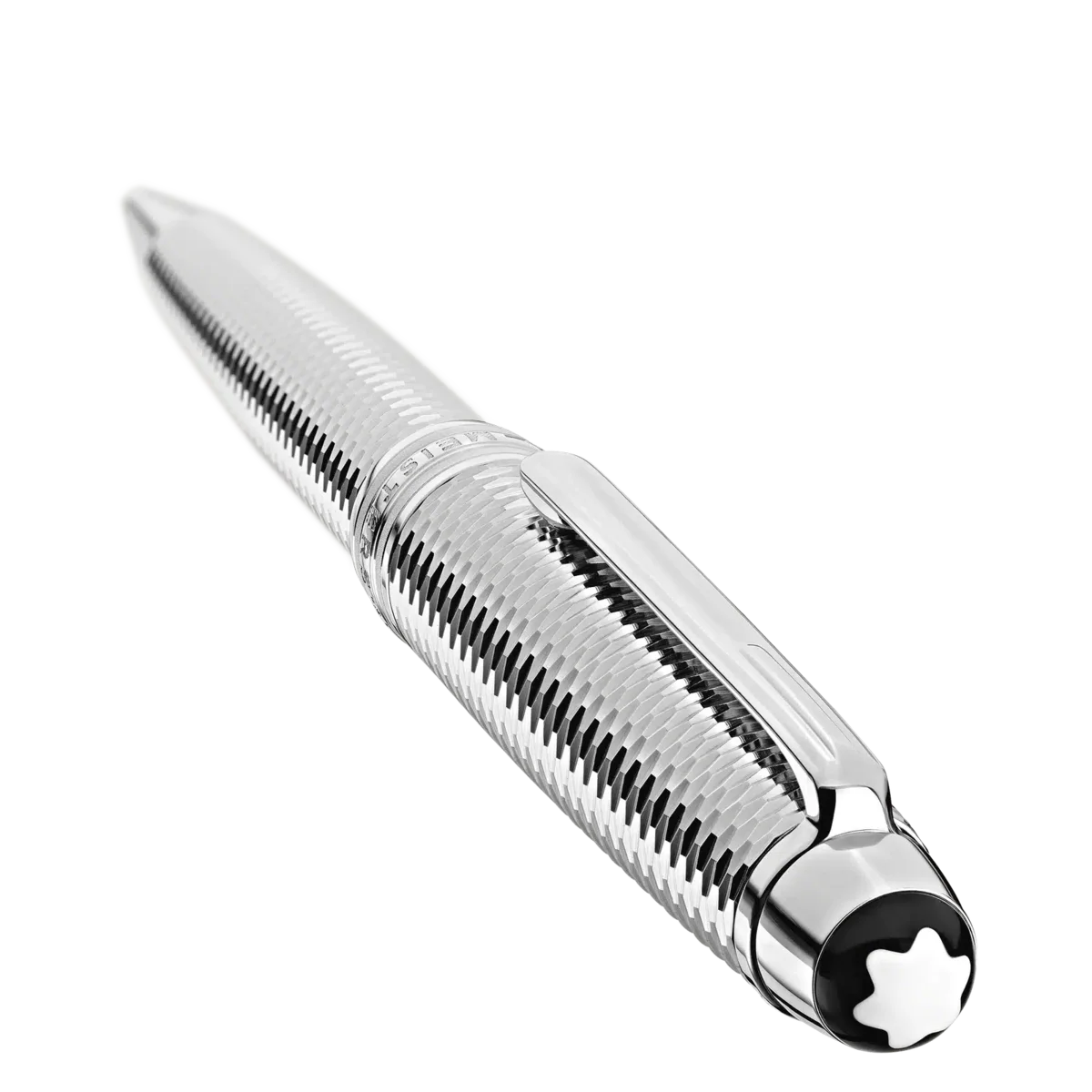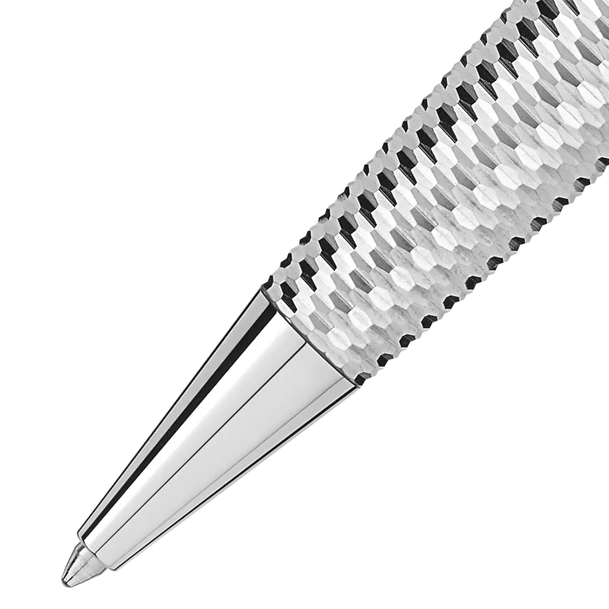 El Meisterstück Solitaire Geometric Dimension nació del deseo de unir el diseño clásico de Montblanc con materiales únicos. Este instrumento de escritura, grabado con un patrón geométrico tridimensional con efecto óptico en un sofisticado tono platino, cuenta con un clip recubierto de platino y tres anillos recubiertos de platino con el nombre de la marca Montblanc en relieve. Acabado con el emblema de Montblanc, apela a la individualidad de cada persona.