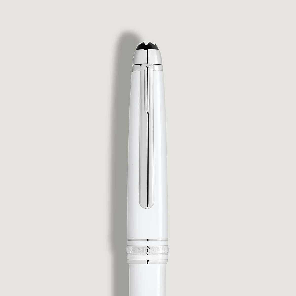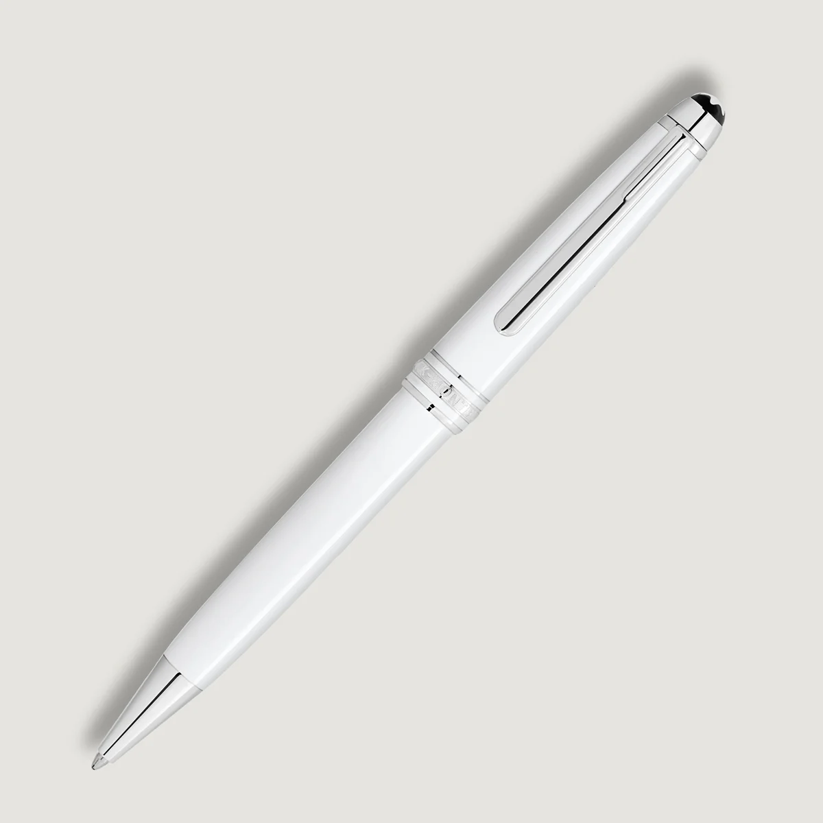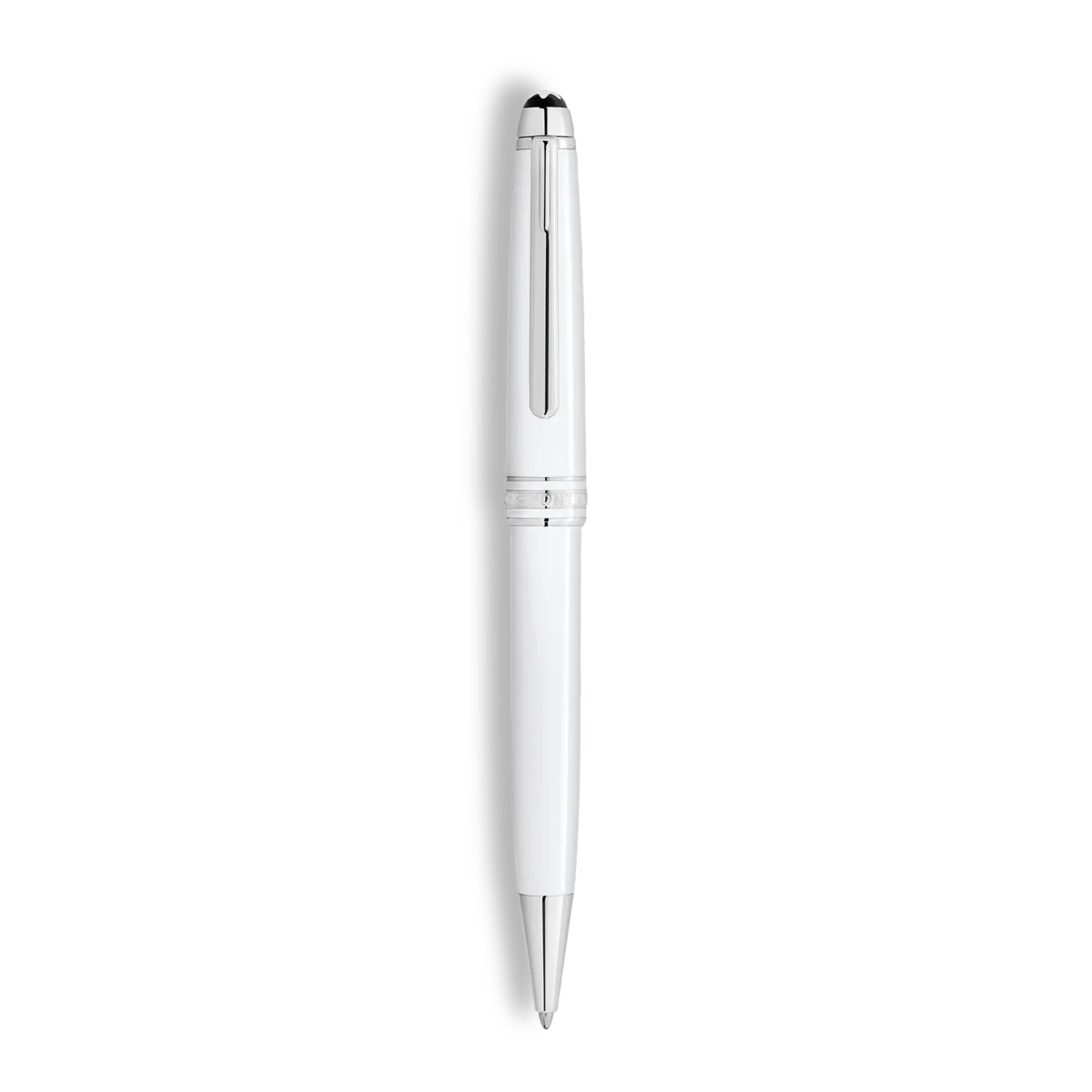 El bolígrafo Meisterstück Classique, fabricado en preciosa resina blanca con elegantes accesorios recubiertos de platino y coronado por el emblema blanco de Montblanc incrustado en la parte superior del capuchón, se convierte en un icono de diseño distintivo.